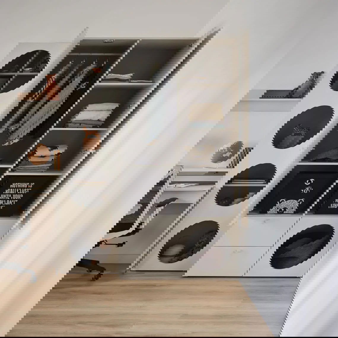 Η δίφυλλη ντουλάπα 1H από τη συλλογή Reli προσφέρει άφθονο χώρο για τα ρούχα και τα αξεσουάρ ενός εφήβου. Ο εσωτερικός φωτισμός LED διευκολύνει την εύρεση των αντικειμένων που θα αποθηκεύσατε, και τα ρυθμιζόμενα ράφια προσαρμόζονται στο μέγεθος των αποθηκευμένων ειδών
