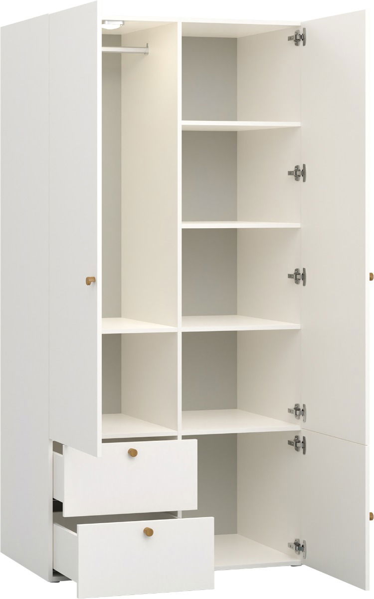Η δίφυλλη ντουλάπα από τη συλλογή Reli προσφέρει άφθονο χώρο για τα ρούχα και τα αξεσουάρ ενός εφήβου. Ο εσωτερικός φωτισμός LED διευκολύνει την εύρεση των αντικειμένων που θα αποθηκεύσατε, και τα ρυθμιζόμενα ράφια προσαρμόζονται στο μέγεθος των αποθηκευμένων ειδών