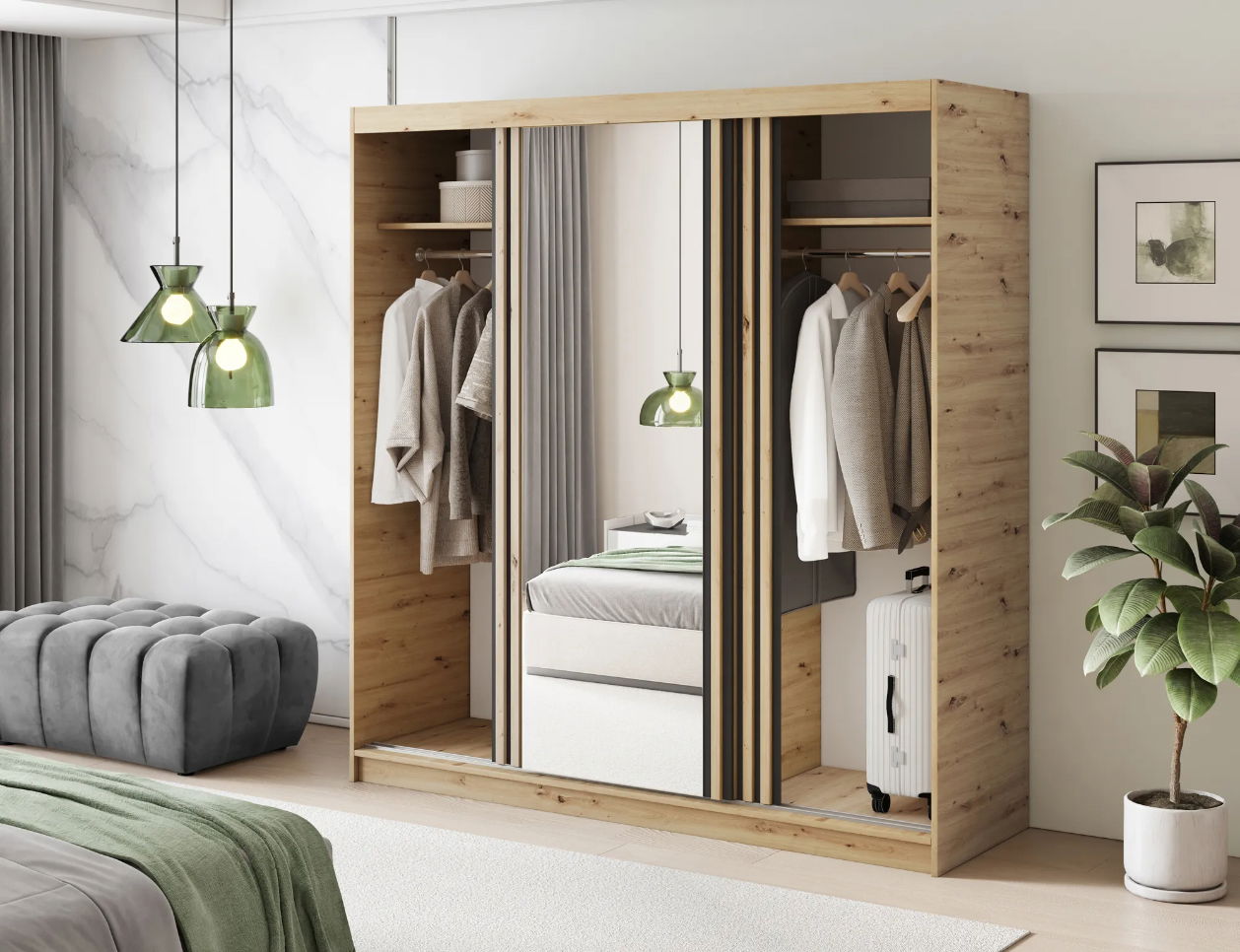 Η συρόμενη ντουλάπα Romerio III είναι ένα μοντέρνο και λειτουργικό έπιπλο ιδανικό για υπνοδωμάτια, διαδρόμους ή καμαρίνια.