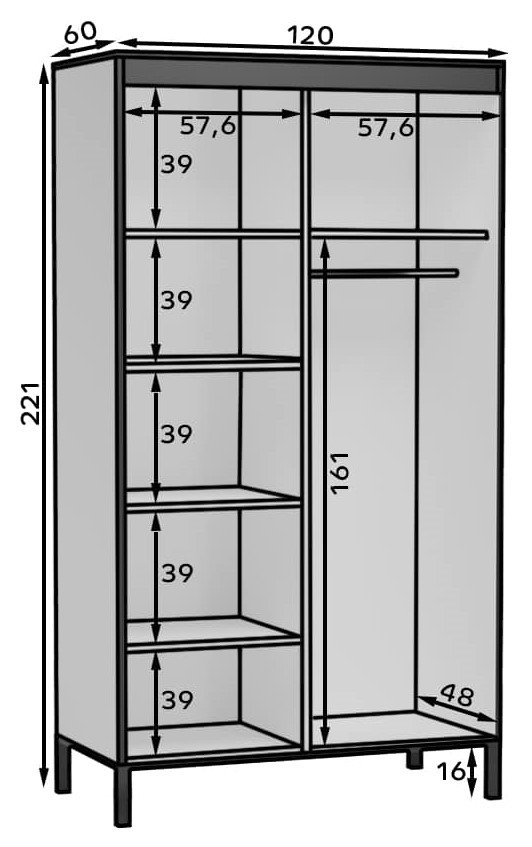 Η συρόμενη ντουλάπα Rusell με πρακτική διάταξη στο εσωτερικό της και άνεση χώρου που διευκολύνει την οργάνωση των ρούχων και των προσωπικών σας αντικειμένων.