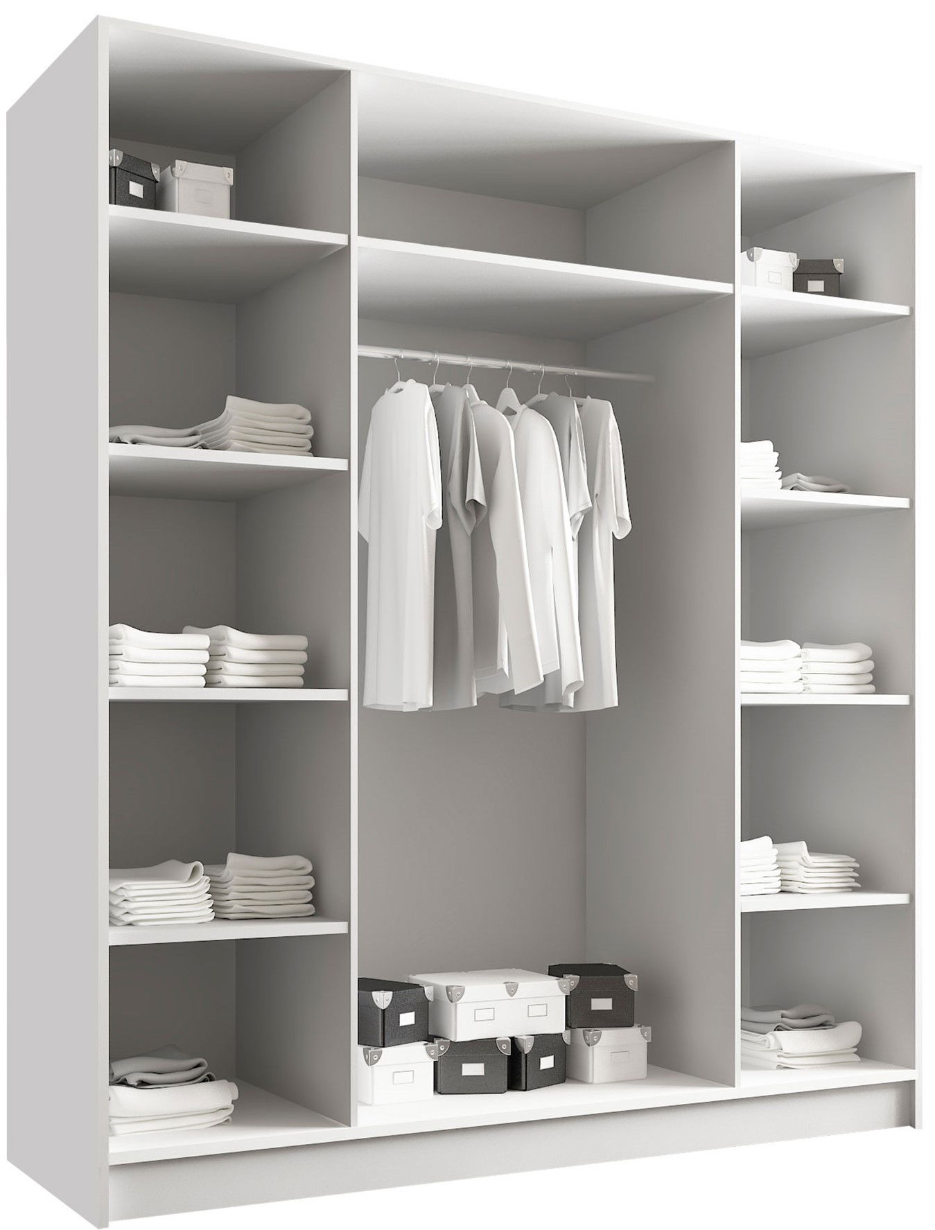 Μια κομψή ντουλάπα γενναιόδωρων διαστάσεων που αποτελεί απαραίτητη προσθήκη σε κάθε χώρο είναι η τετράφυλλη ντουλάπα Santi III. Μέσα στην ντουλάπα θα βρείτε πρακτικά ράφια και ράγα για να τοποθετήσετε όλα τα ρούχα σας. Είναι μια επιλογή για να χαρίσετε νέα πνοή στον χώρο του σπιτιού σας Με καθρέπτη σε όλα τα φύλλα.
