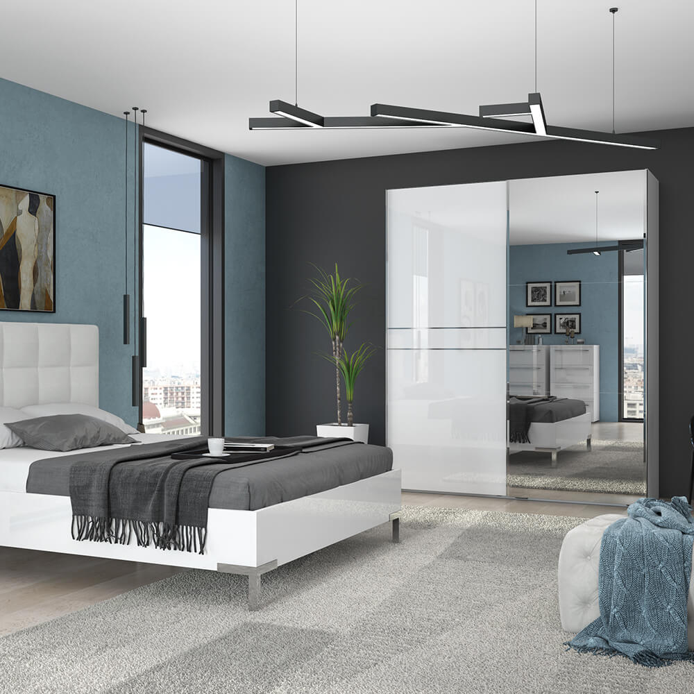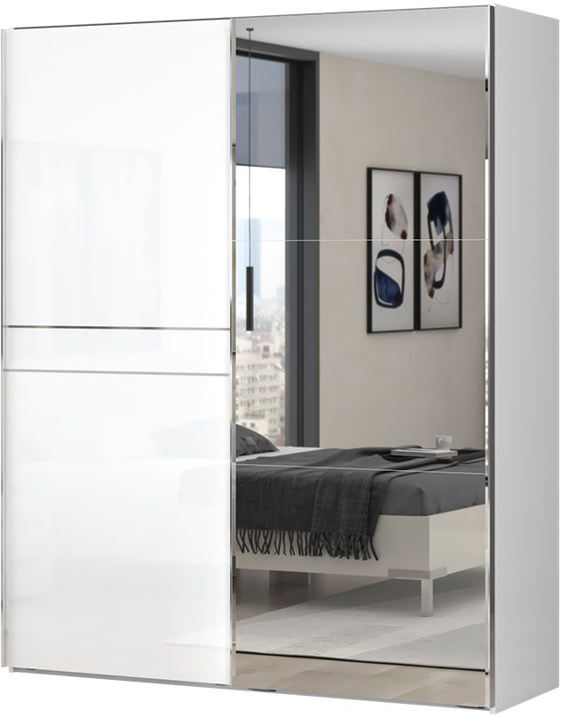 Ντουλάπα συρόμενη δίφυλλη Realm 180 με καθρέπτη-Λευκό