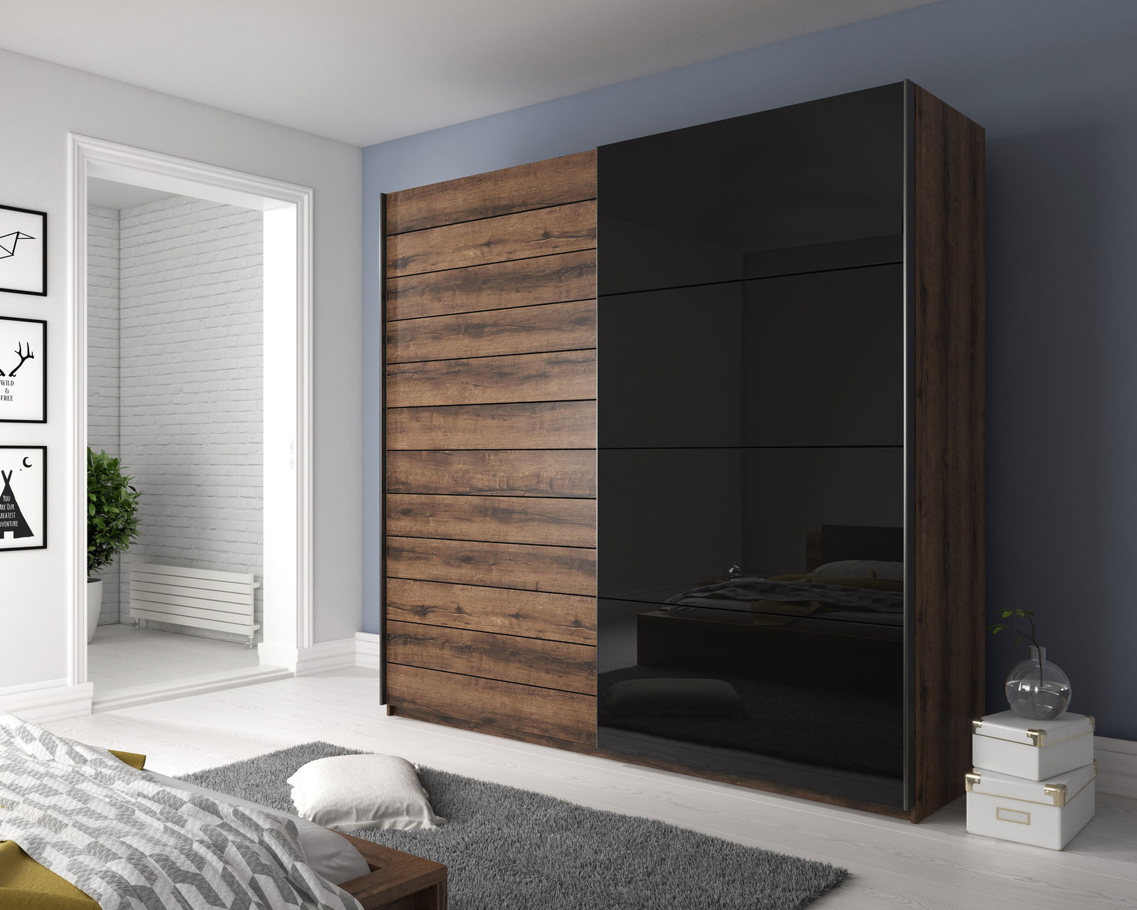 – Χρώματα: Λευκός σκελετός με μία πόρτα σε Φυσικό, Καρυδί σκελετός με μία πόρτα σε Μαύρο γυαλιστερό.