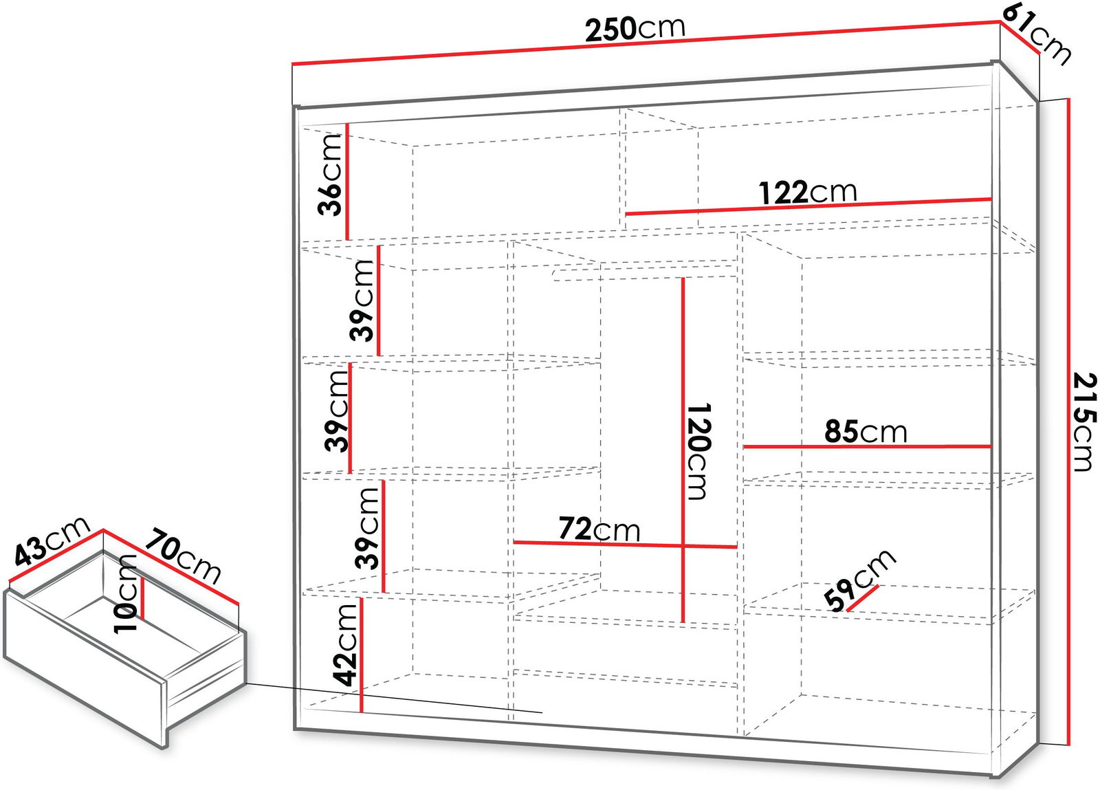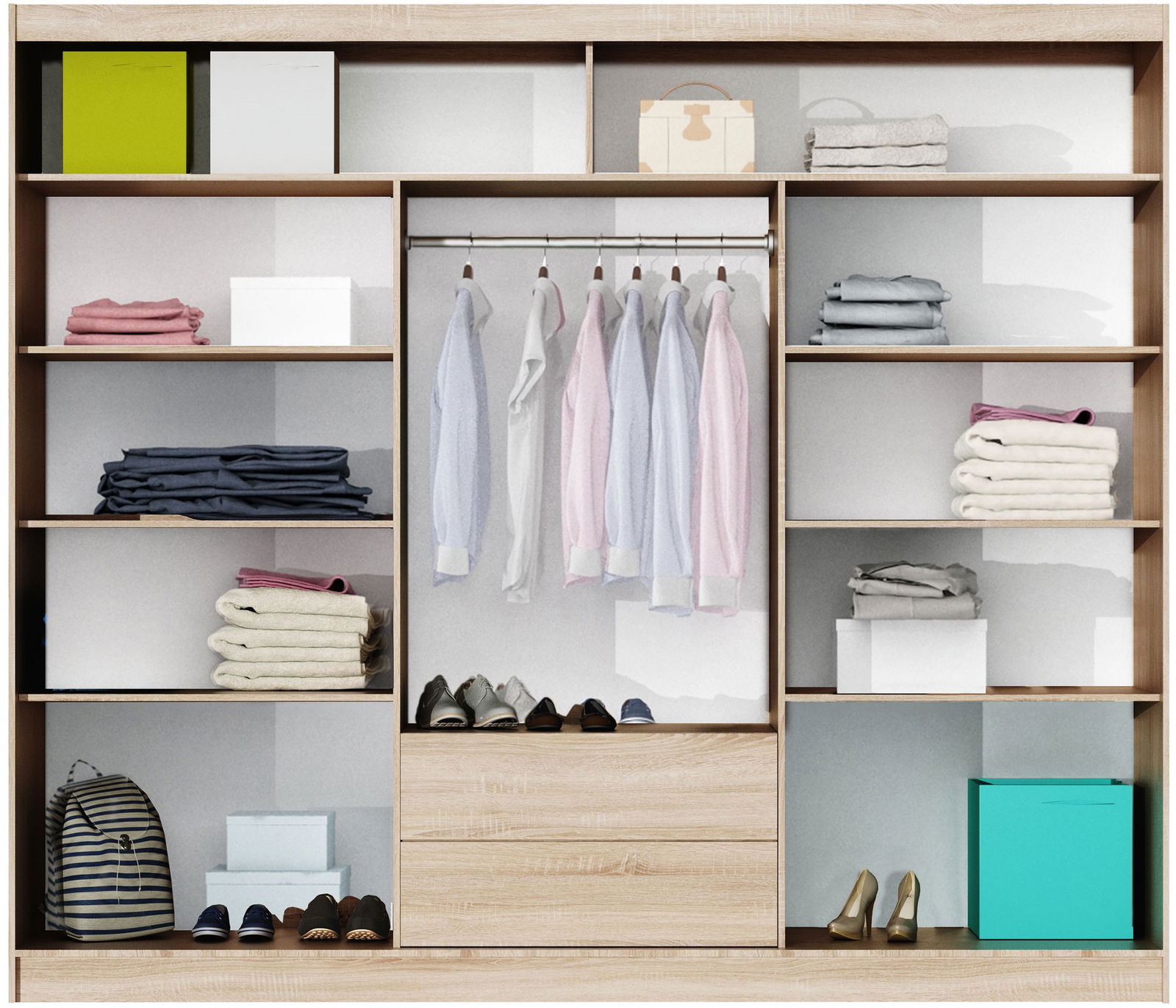 Η συρόμενη ντουλάπα Lizbona II είναι ένας τέλειος τρόπος για τη βέλτιστη αξιοποίηση του χώρου και την άνετη αποθήκευση των ρούχων. Είναι εξοπλισμένη με βαθιά ράφια , μια μπάρα για κρεμάστρες και συρτάρια, παρέχοντας άφθονο χώρο για την αποθήκευση πραγμάτων.