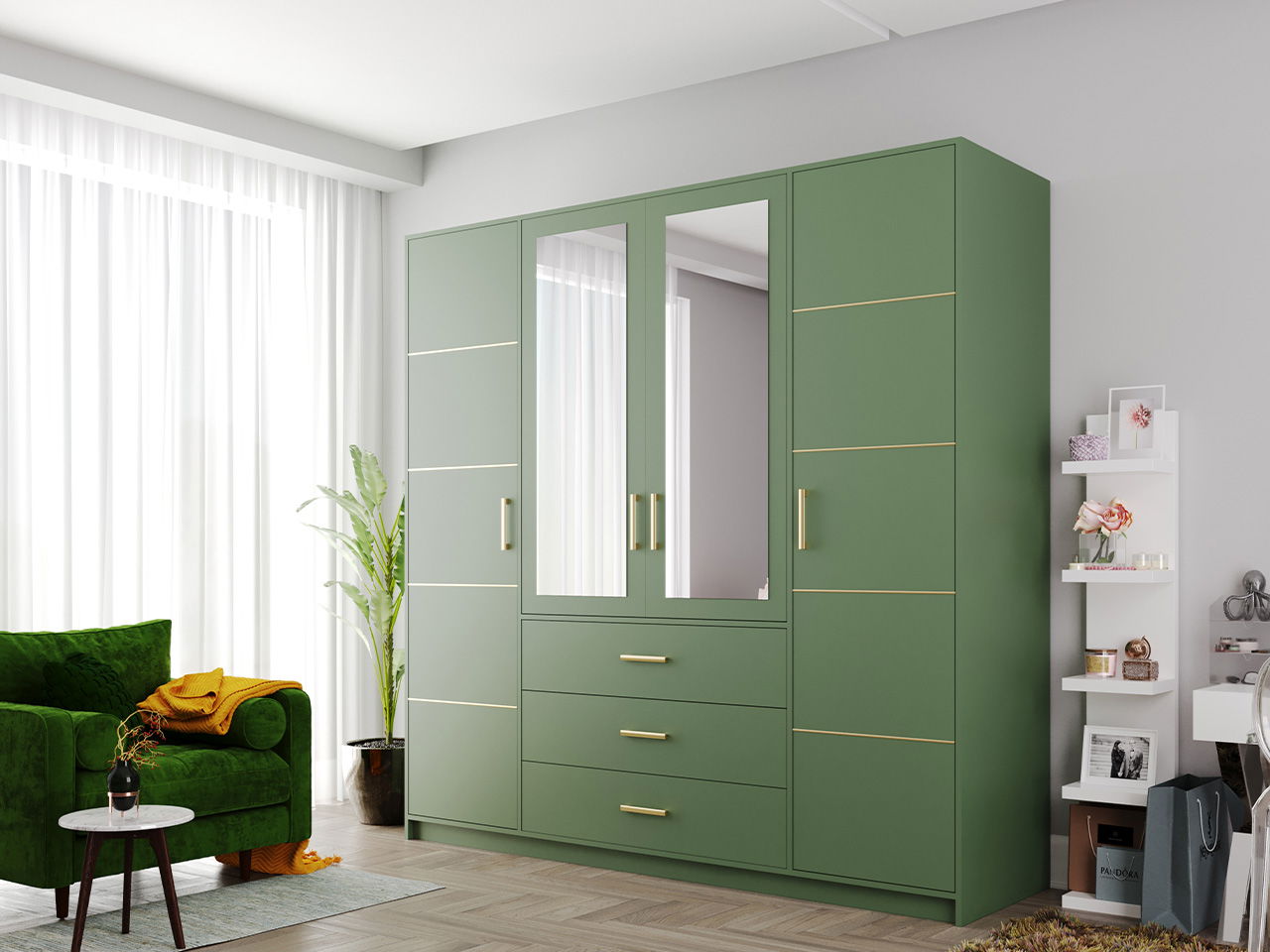 Ντουλάπα τετράφυλλη Bali 4D 2 -Prasino