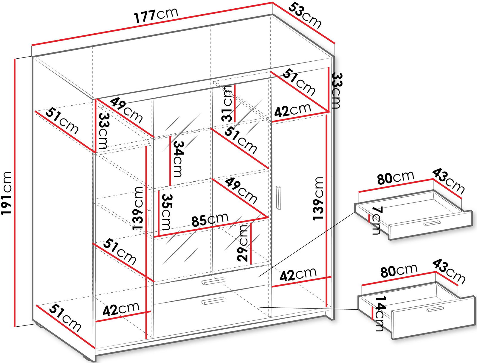 – 2 συρτάρια