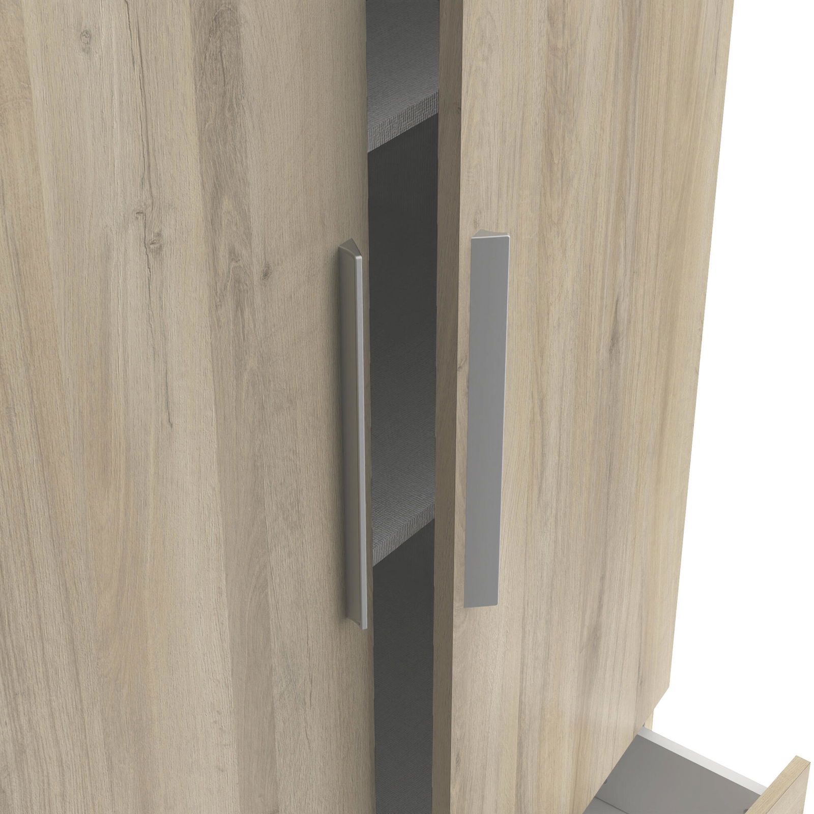 Αν και ο σχεδιασμός της είναι λιτός, δεν παύει να είναι μια από τις πιο πρακτικές ντουλάπες. Με 4 αποθηκευτικούς χώρους στη μια μεριά και 2 στην άλλη, με ράφι και ράγα για κρεμάστρες, σίγουρα θα μπορεί να φιλοξενήσει τα ρούχα σας άνετα. Επιπρόσθετα, τα δυο συρτάρια που διαθέτει, βοηθούν για να έχετε την γκαρνταρόμπα σας, πάντα σε τάξη.