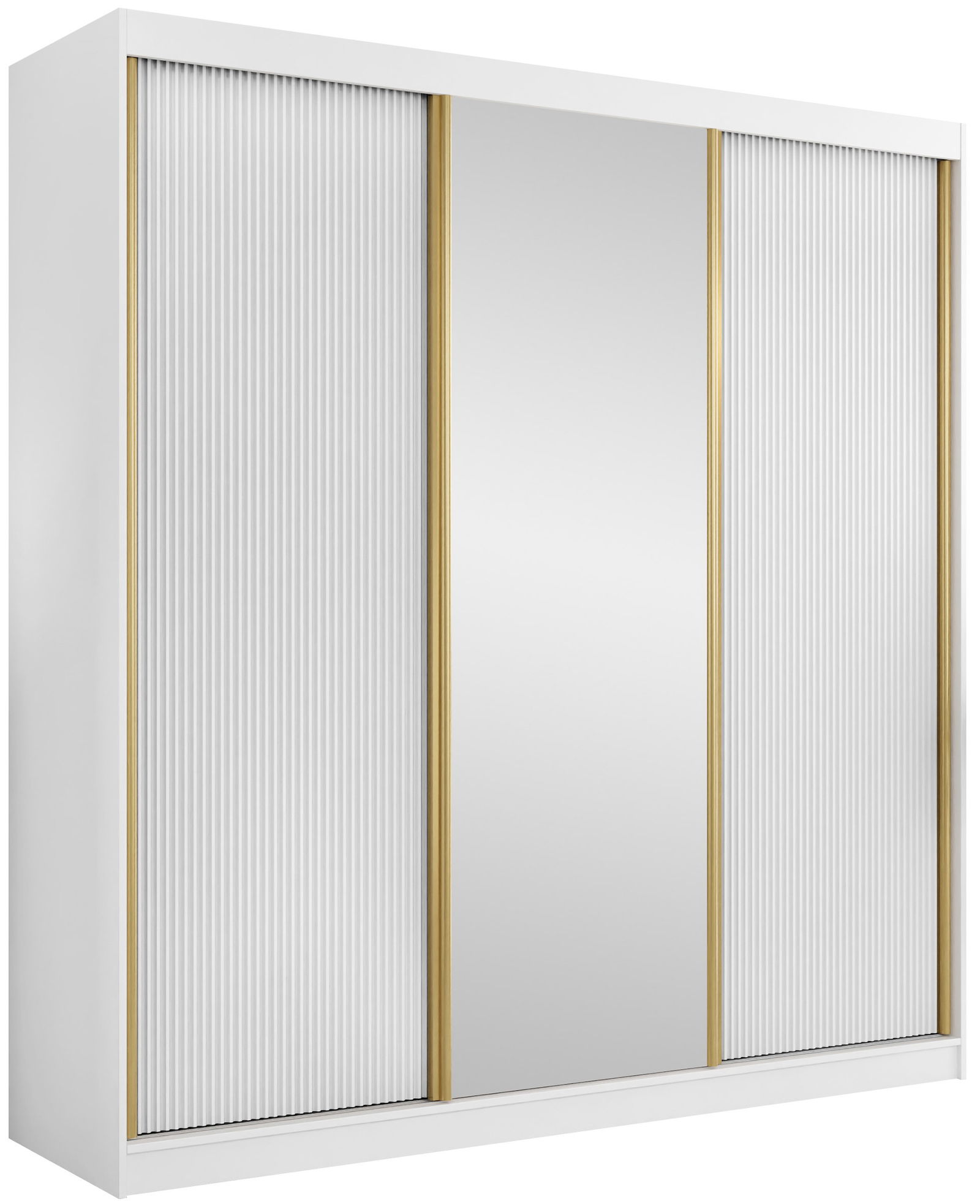 Η συρόμενη ντουλάπα Tireno 3D είναι η ιδανική επιλογή για όσους αγαπούν το μοντέρνο στυλ και την πρακτικότητα. Με κομψές συρόμενες πόρτες, καθρέφτη που μεγαλώνει τον χώρο και χρυσές λεπτομέρειες που προσδίδουν πολυτέλεια, συνδυάζει design και λειτουργικότητα. Διαθέτει ευρύχωρα ράφια και ράγα για κρεμαστά ρούχα – τέλεια για να οργανώσετε όλα σας τα ρούχα με στυλ!