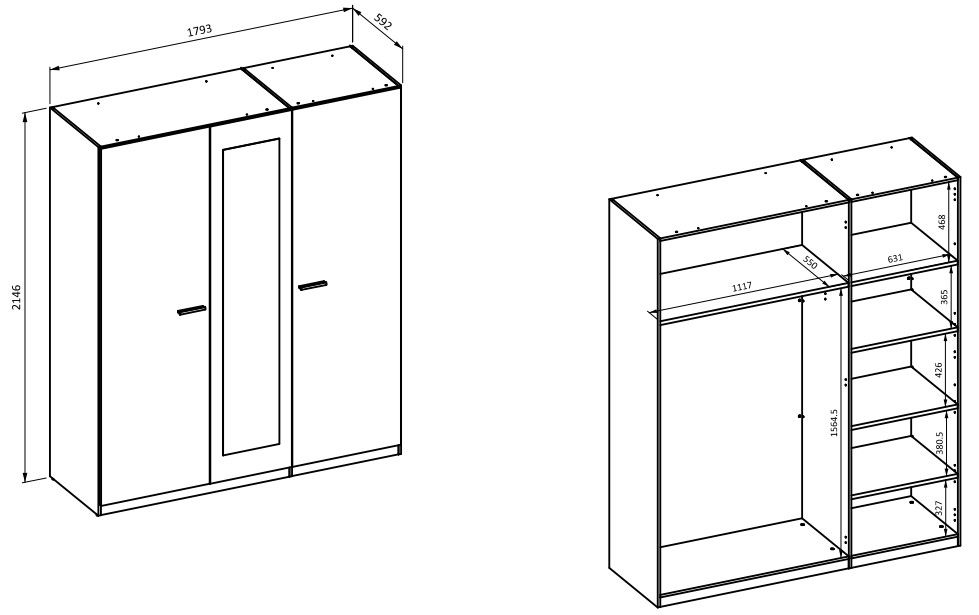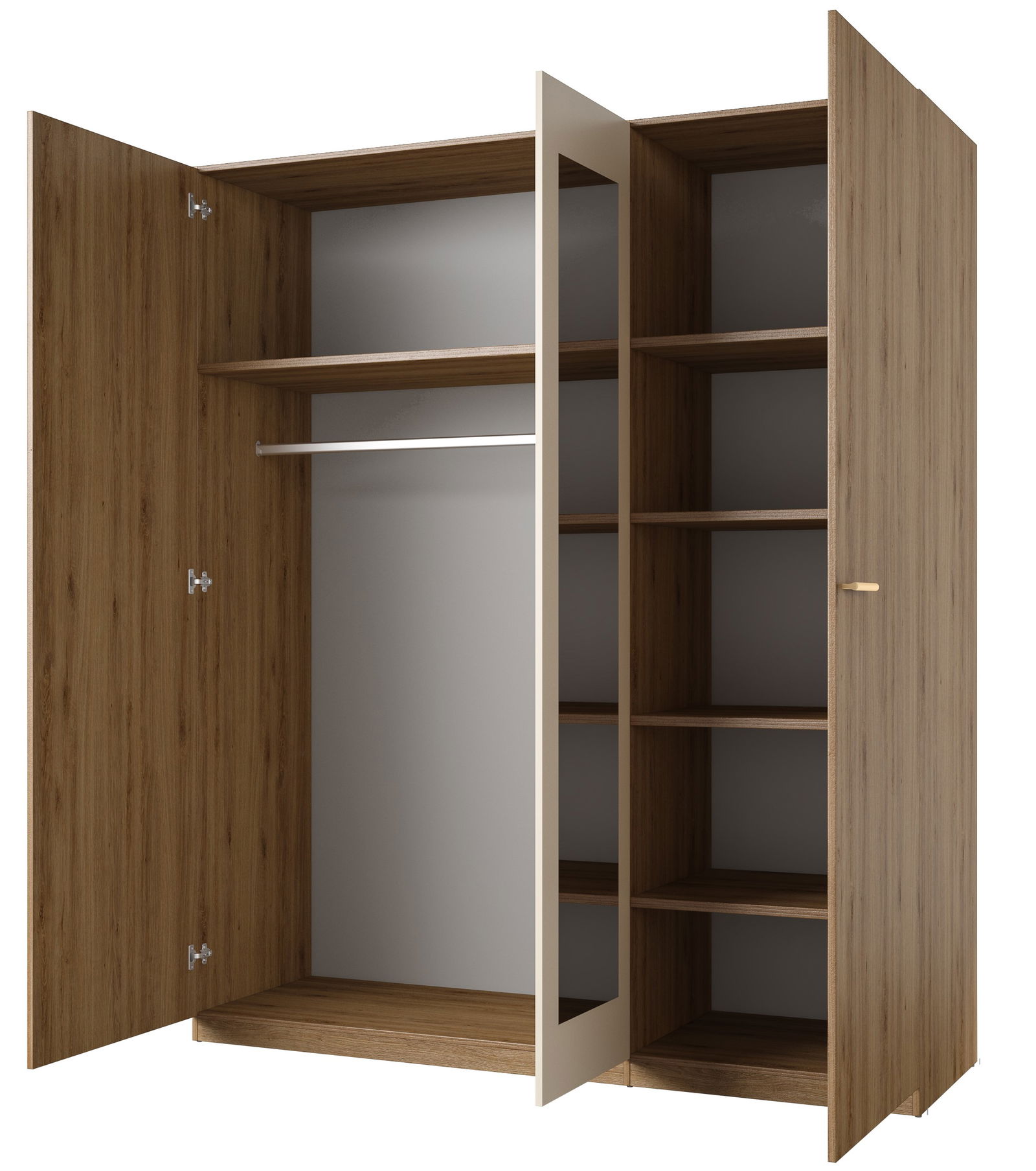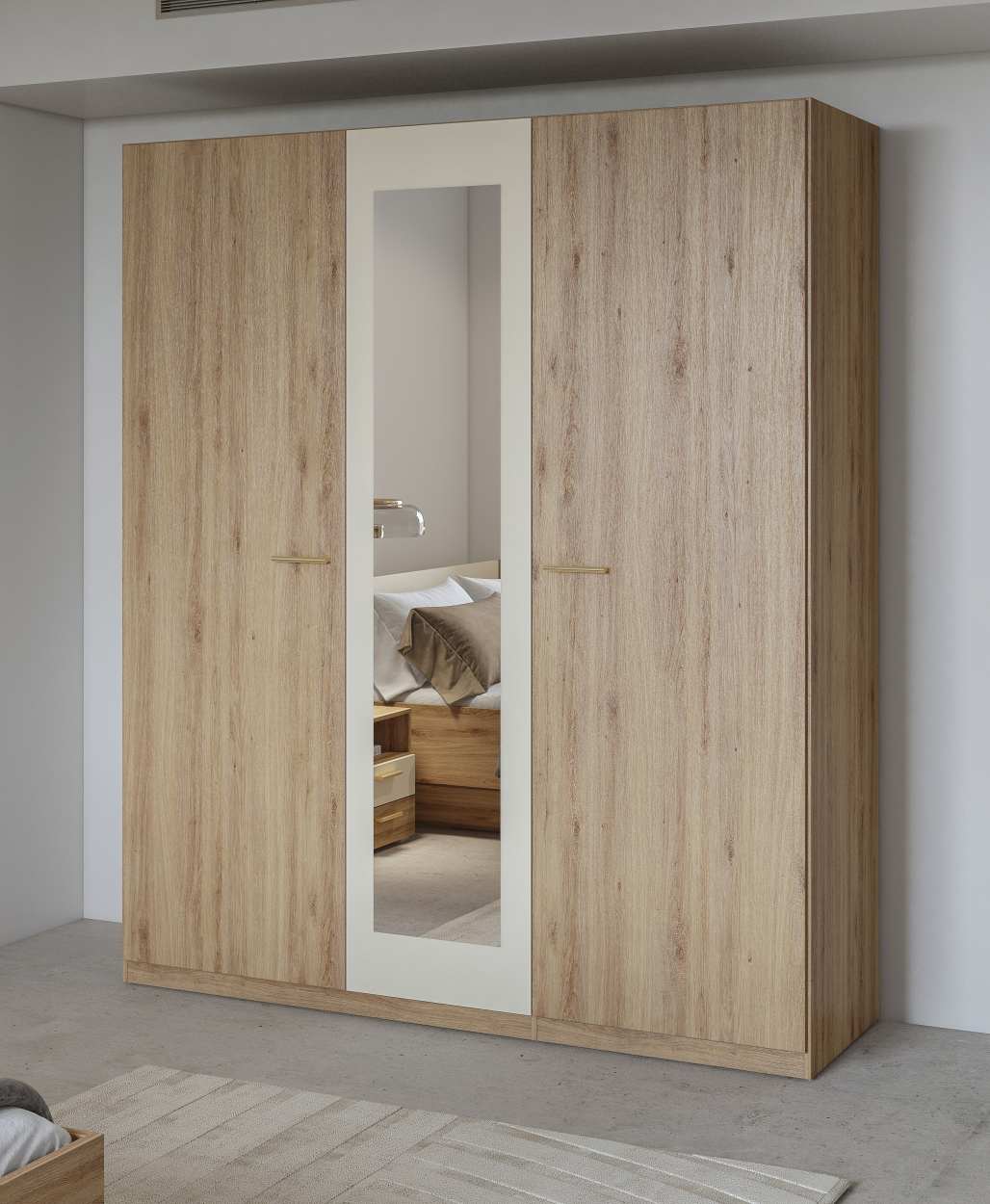 Η ντουλάπα Verti με καθρέπτη τρίφυλλη είναι ιδανική για μεσαία έως μεγάλα δωμάτια, παρέχοντας άφθονο αποθηκευτικό χώρο. Περιλαμβάνει τρεις πόρτες (μία με καθρέφτη), πέντε ράφια και μία κρεμάστρα. Συνδυάστε την, με τα υπόλοιπα έπιπλα της σειράς και δημιουργήστε ένα ολοκληρωμένο σετ υπνοδωματίου.
