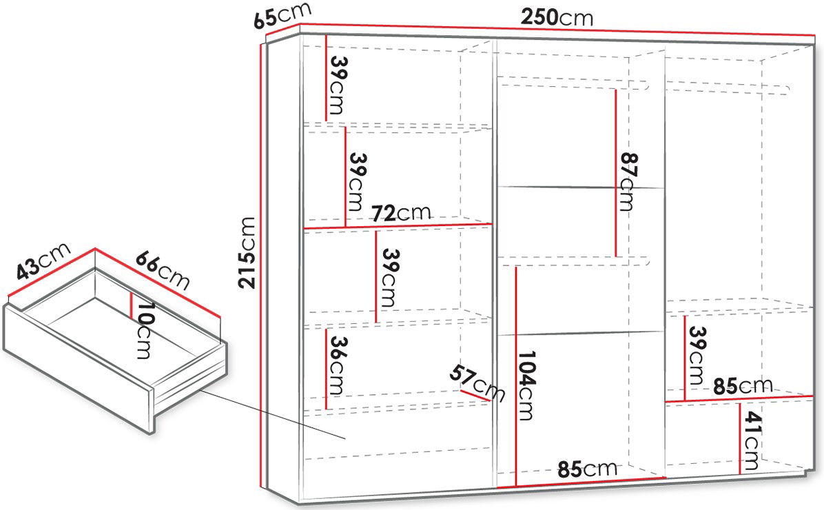 Ντουλάπα συρόμενη Vigo plus, ιδιαιτέρου σχεδιασμού που θα ξεχωρίζει διαχρονικά στον χώρο σας! Αποτελεί ιδανική επιλογή για εσάς που λατρεύετε την οργάνωση και εύκολη τακτοποίηση των ρούχων και του χώρου σας, η ντουλάπα διαθέτει ευρύχωρους αποθηκευτικούς χώρους που θα λύσουν τα χέρια σας στην καθημερινότητά καθώς, οι τρεις ράγες για κρεμάστρες, τα ράφια και τα συρτάρια δίνουν την επιλογή χωρισμού και εύρεσης των ρούχων εύκολα και γρήγορα.