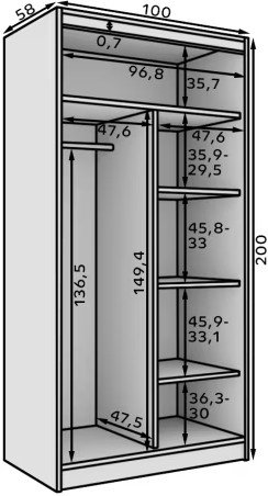 Ντουλάπα Wardis 100 συρόμενη-Leuko