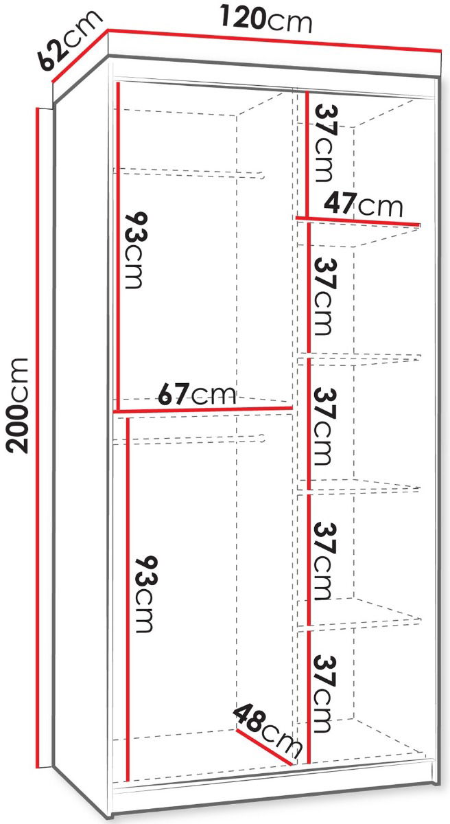 Η συρόμενη ντουλάπα Wika 120 είναι ένα κομψός και πρακτικός χώρος αποθήκευσης που δεν θα καταλαμβάνει πολύ χώρο στο δωμάτιο σας. Η προστιθέμενη αξία εδώ είναι ο καθρέφτης. Μια φαινομενικά κλασική προσθήκη, αλλά με χαρακτηριστικό σχήμα. Οι λεπτές καμπύλες με σαφή κοπή εκτελούν μια ενδιαφέρουσα διακόσμηση των επίπλων.
