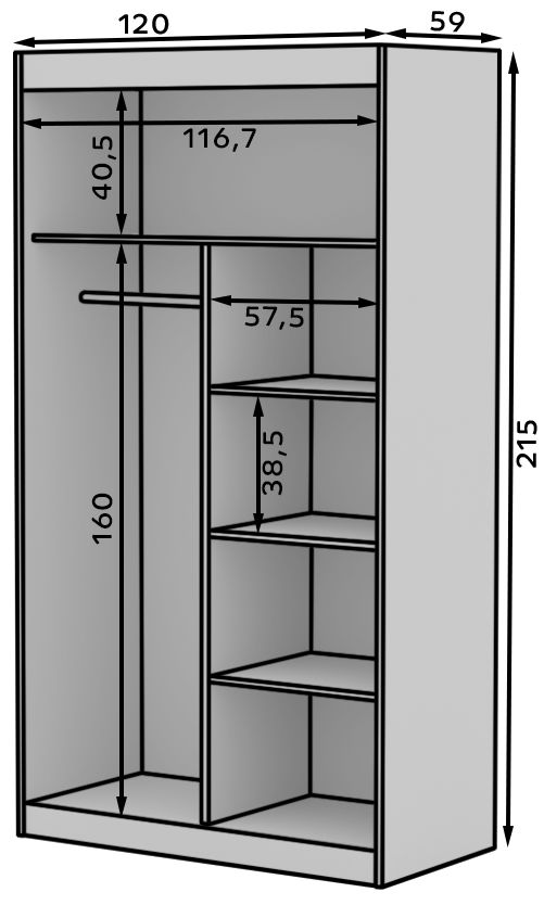 Ντουλάπα Zaist 120 συρόμενη-Fusiko
