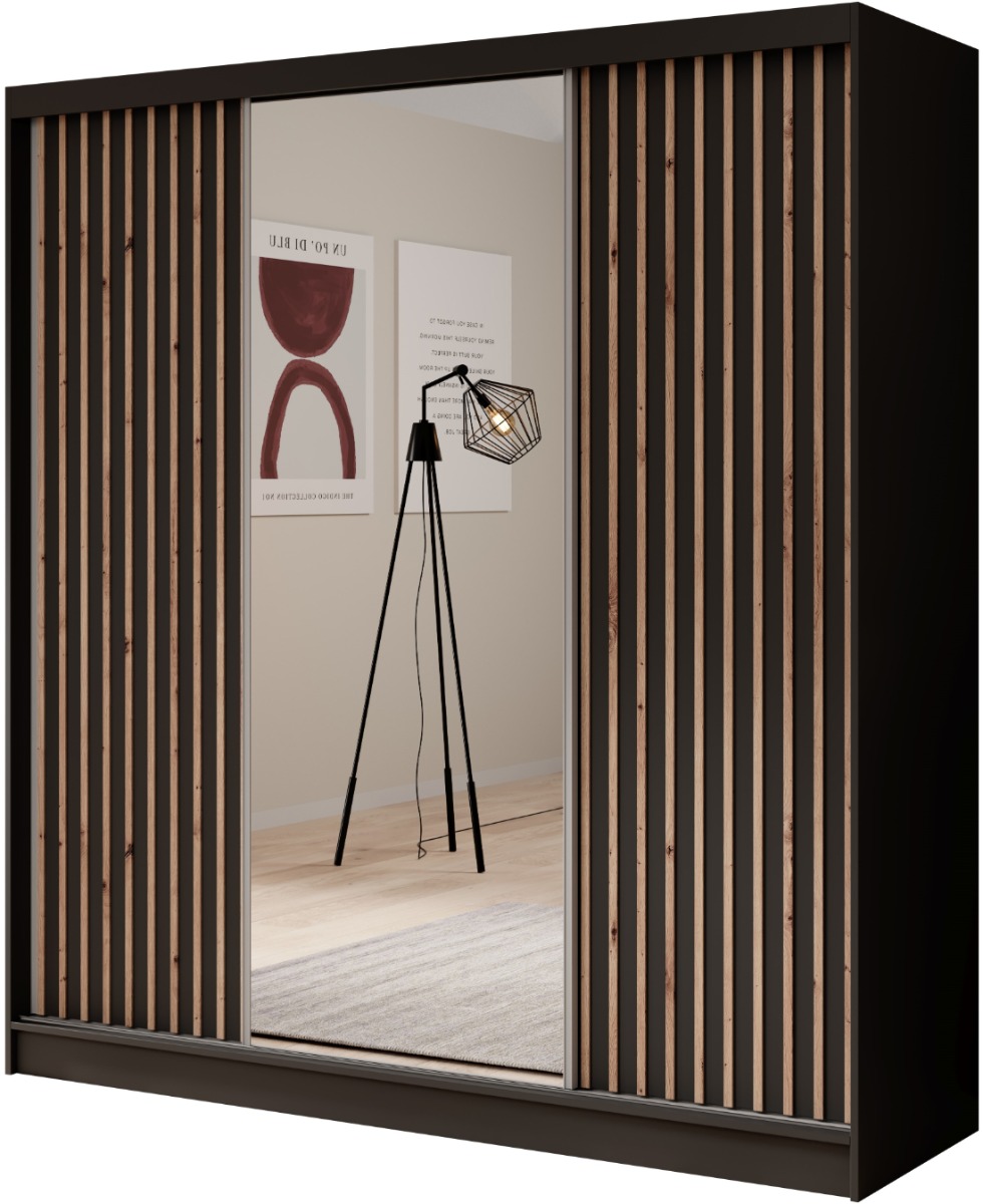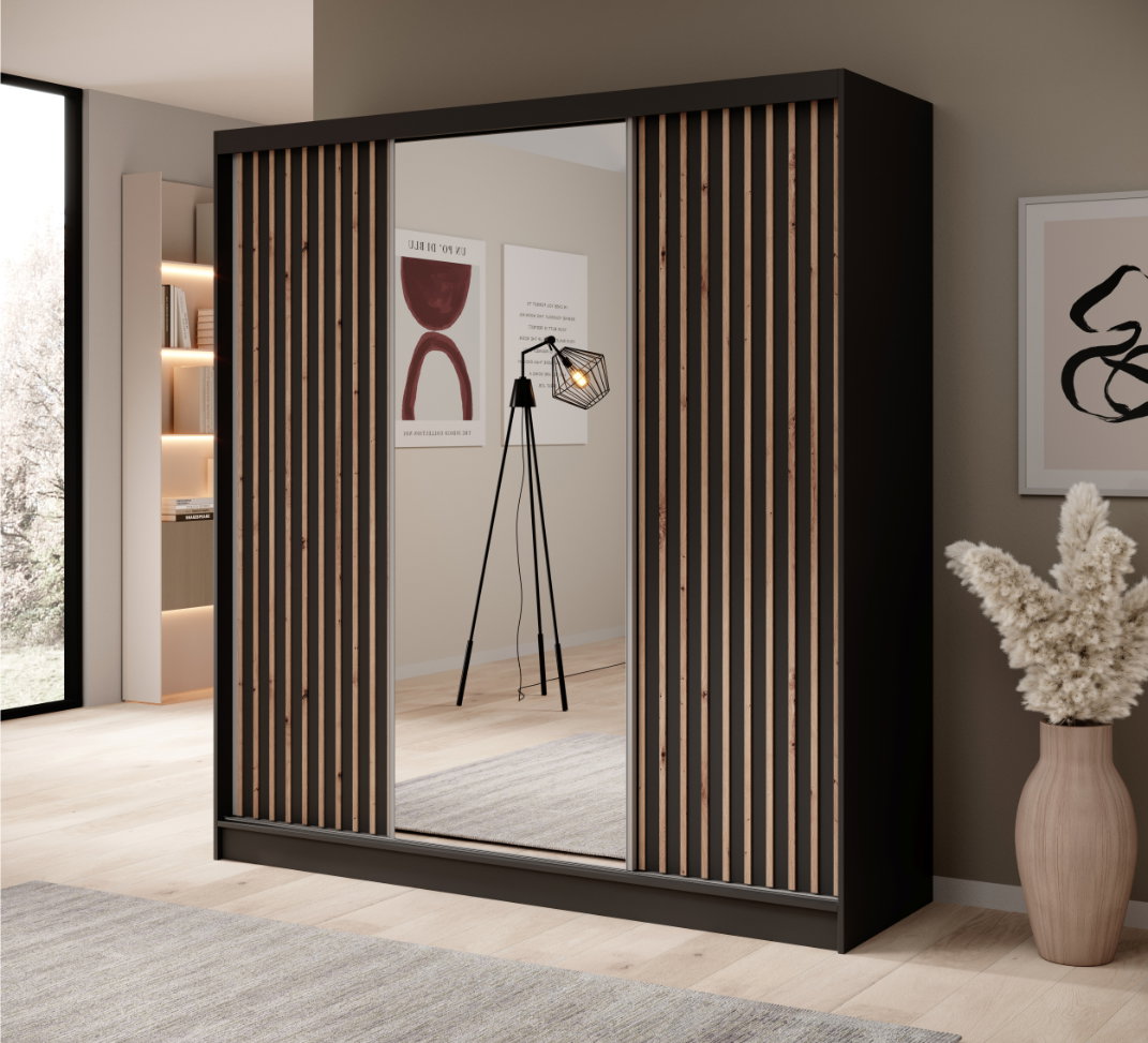 Η ντουλάπα ZenSlide 200 συρόμενη με καθρέφτη είναι μια μοντέρνα και κομψή λύση για ανθρώπους που εκτιμούν τόσο τη λειτουργικότητα όσο και την αισθητική. Αυτή η ντουλάπα είναι ιδανική για ευρύχωρα υπνοδωμάτια, διαδρόμους ή καμαρίνια, προσφέροντας μεγάλη αποθηκευτική ικανότητα για ρούχα και αξεσουάρ.