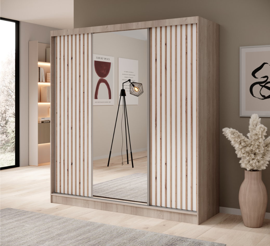 Η ντουλάπα ZenSlide 200 συρόμενη με καθρέφτη είναι μια μοντέρνα και κομψή λύση για ανθρώπους που εκτιμούν τόσο τη λειτουργικότητα όσο και την αισθητική. Αυτή η ντουλάπα είναι ιδανική για ευρύχωρα υπνοδωμάτια, διαδρόμους ή καμαρίνια, προσφέροντας μεγάλη αποθηκευτική ικανότητα για ρούχα και αξεσουάρ.