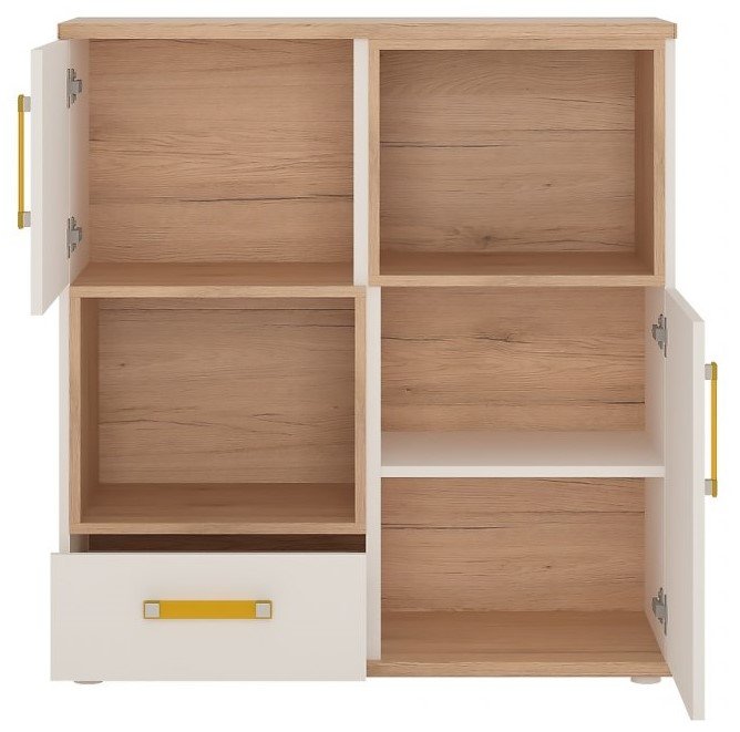 Ντουλάπι πρακτικών διαστάσεων, ιδανική λύση για να προσθέσετε αποθηκευτικό χώρο σε μικρότερα δωμάτια. Χάρη στο χαμηλό του ύψος, είναι εύκολα προσβάσιμο από παιδιά και του επιτρέπει να αποθηκεύουν με τάξη παιχνίδια και μικροαντικείμενα. Σε ουδέτερους χρωματισμούς, κατάλληλο και για τα δύο φύλα.