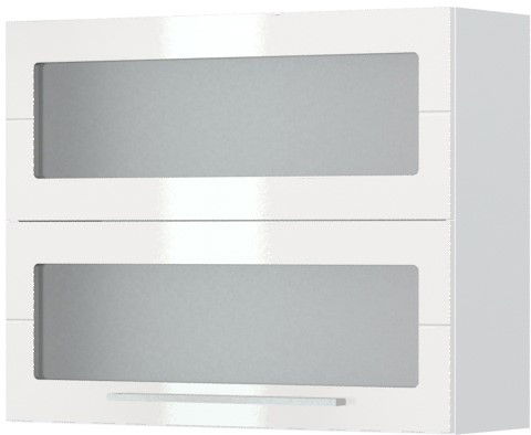 Ντουλάπι κρεμαστό Hudson V7-90-2KSP με βιτρίνα-Λευκό – Λευκό γυαλιστερό