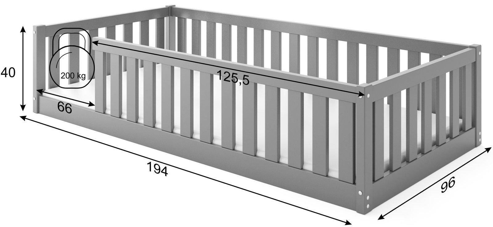 Παιδικό Κρεβάτι Bellissimo-Graphite-90 x 190