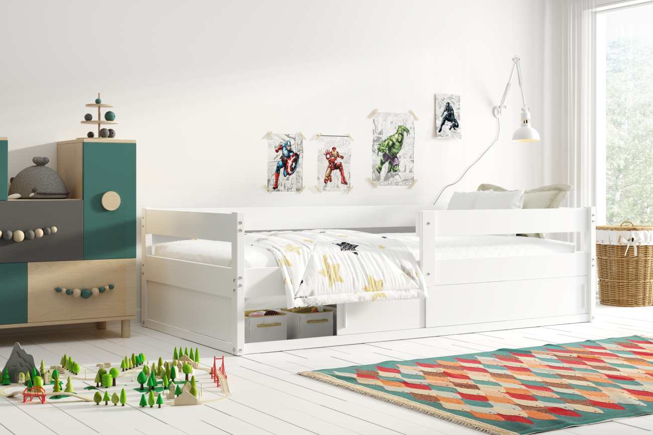 Πλαίσιο κρεβατιού: Κατασκευασμένο από ξύλο πεύκου και MDF, βαμμένο με βερνίκι νερού