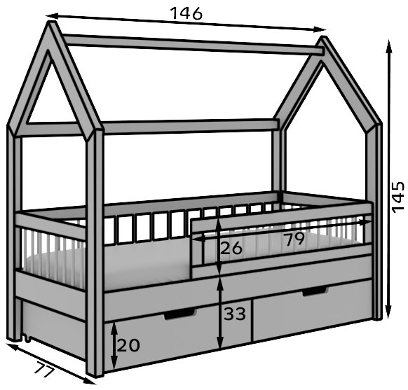 Το παιδικό κρεβάτι Luca συνδυάζει τη λειτουργικότητα και το σχεδιασμό εμπνευσμένο από τη ζεστή, σκανδιναβική αισθητική. Η δομή του σε σχήμα σπιτιού διεγείρει τη φαντασία του παιδιού, δημιουργώντας ένα άνετο μέρος για παιχνίδι και ξεκούραση. Θα λειτουργήσει τέλεια ως κεντρικό στοιχείο του παιδικού δωματίου, παρέχοντας άνετο ύπνο και εμπνέοντας το δημιουργικό παιχνίδι.