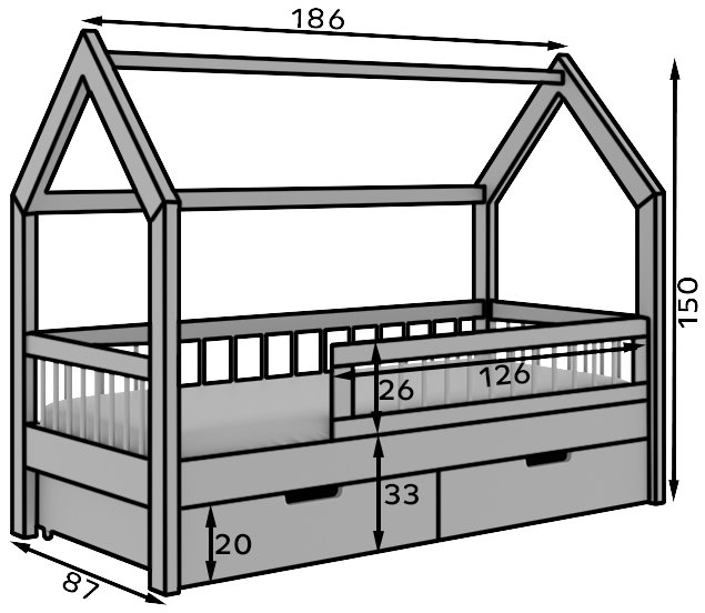 Το παιδικό κρεβάτι Luca συνδυάζει τη λειτουργικότητα και το σχεδιασμό εμπνευσμένο από τη ζεστή, σκανδιναβική αισθητική. Η δομή του σε σχήμα σπιτιού διεγείρει τη φαντασία του παιδιού, δημιουργώντας ένα άνετο μέρος για παιχνίδι και ξεκούραση. Θα λειτουργήσει τέλεια ως κεντρικό στοιχείο του παιδικού δωματίου, παρέχοντας άνετο ύπνο και εμπνέοντας το δημιουργικό παιχνίδι.