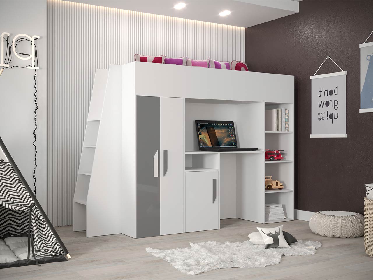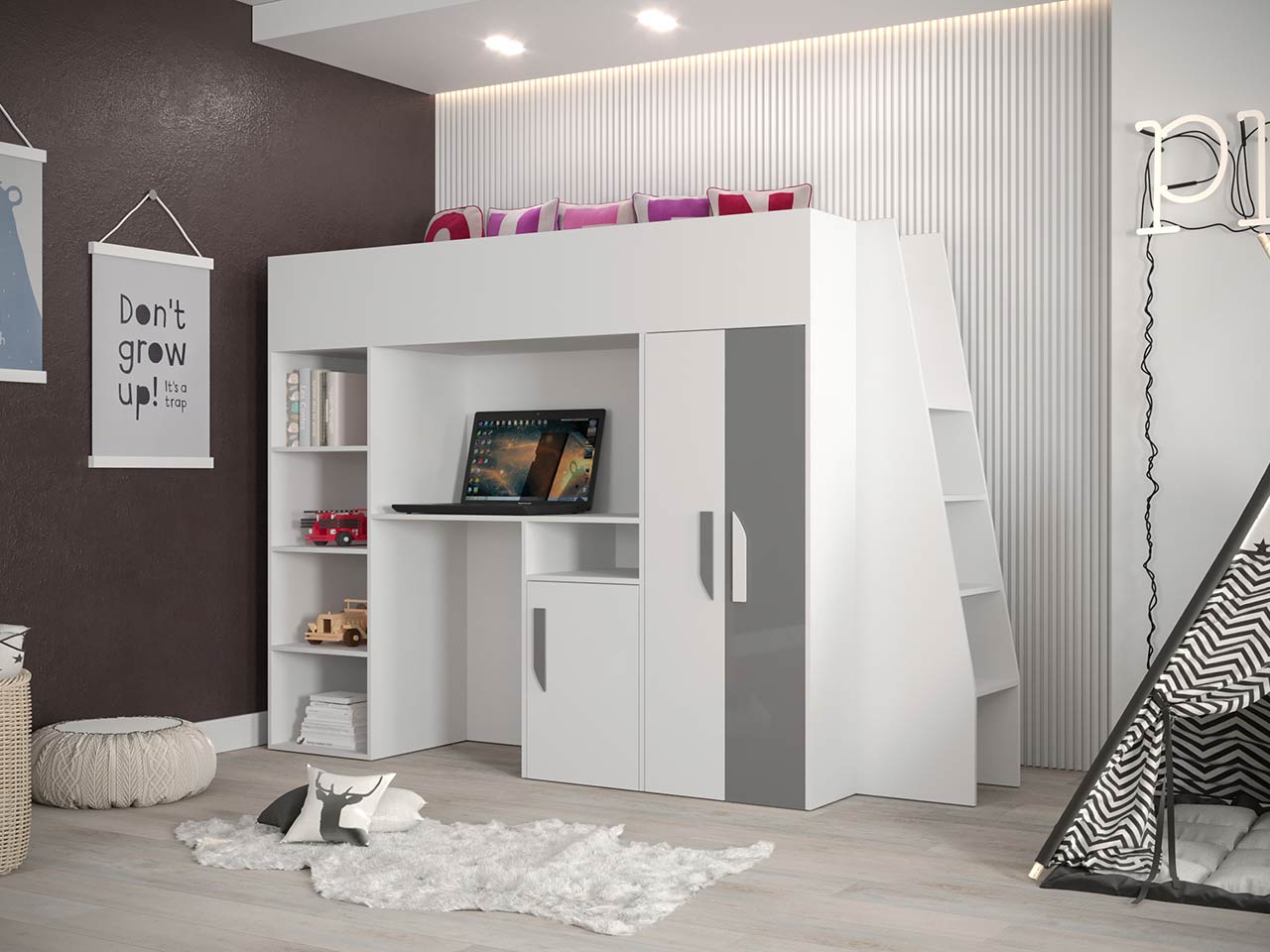 Το πολυλειτουργικό κρεβάτι Party XV, αποτελεί την ιδανική επιλογή για ένα εφηβικό δωμάτιο. Συνδυάζει ύπνο, μελέτη και οργάνωση. Το χρώμα του θα ανανεώσει την αισθητική του δωματίου ενώ παράλληλα θα εξοικονομήσετε χώρο!