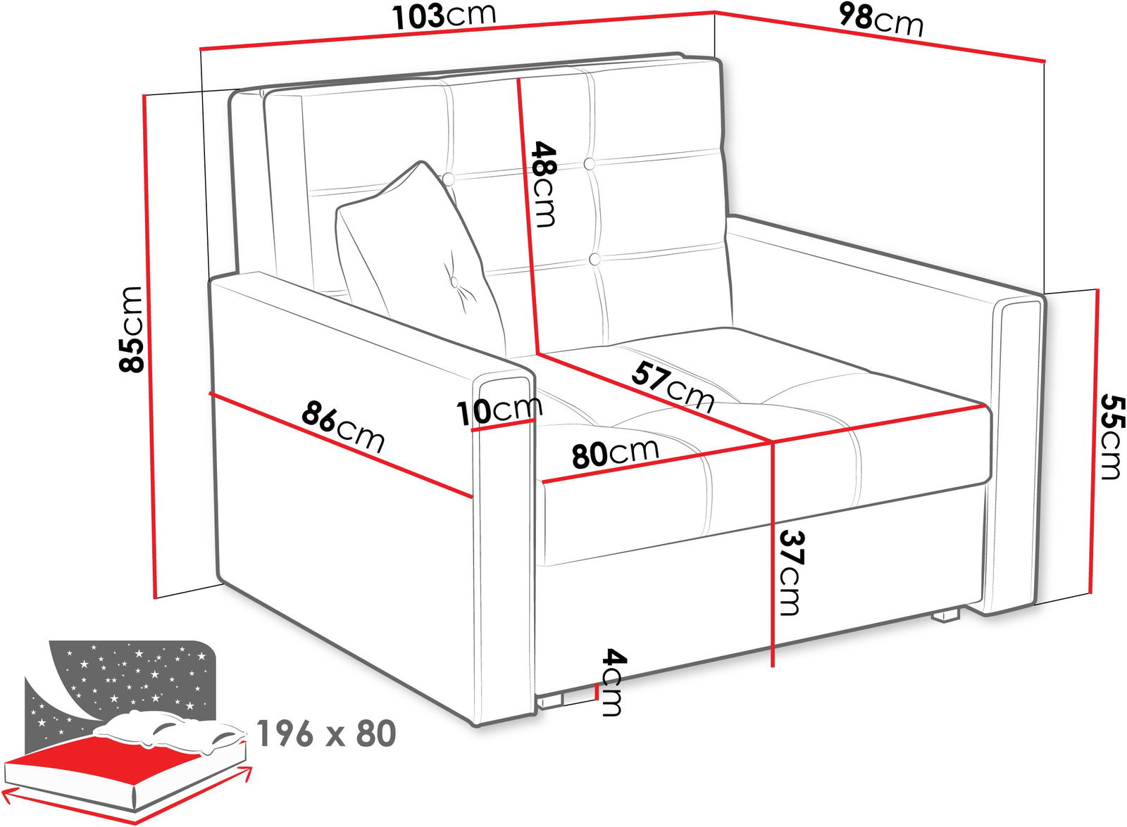 Πολυθρόνα κρεβάτι Viva lux I-Γκρι Σκούρο
