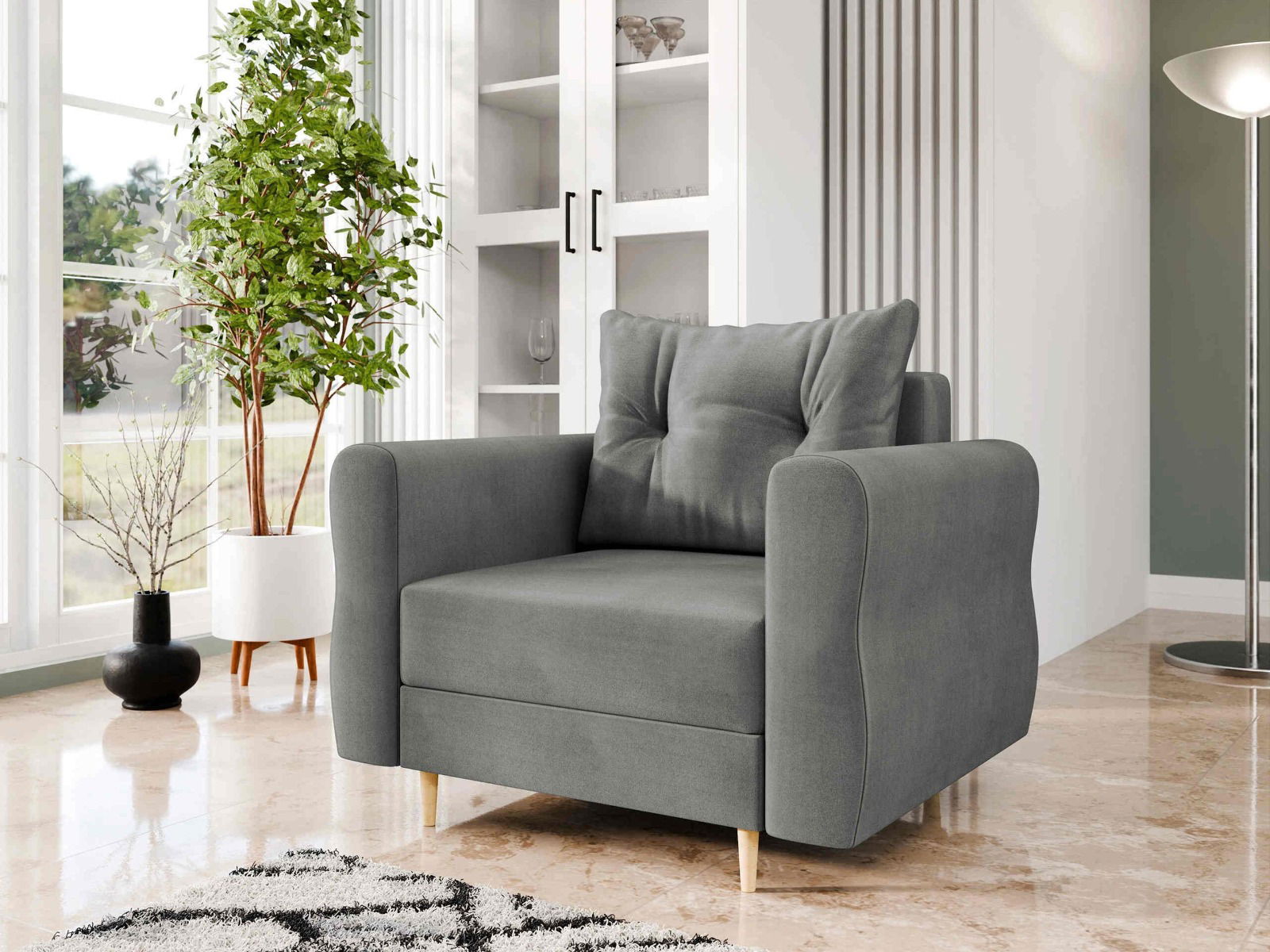 – Η πολυθρόνα στέκεται μόνη της (η πλάτη είναι καλυμμένη με ύφασμα).
