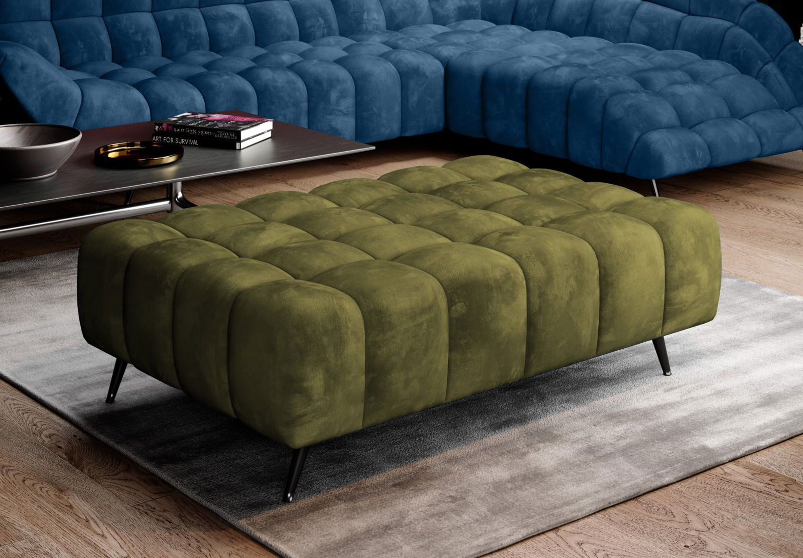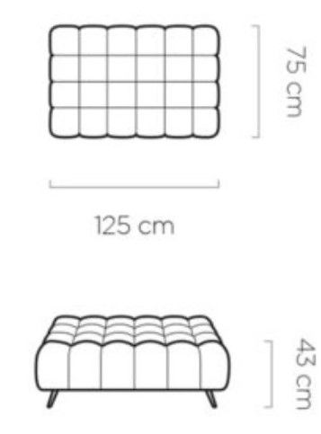Πουφ Dolphin μοντέρνου σχεδιασμού με βολικές διαστάσεις που προσφέρουν θέση για δύο καθήμενους . Φιλοξενήστε τους φίλους και συγγενείς σας και αξιοποιήστε στο μέγιστο τις δυαντότητες που σας προσφέρει. Χρησιμοποιήστε το ως υποπόδιο, ως ξεχωριστή θέση καθίσματος η ακόμα και ως βοηθητική επιφάνεια στήριξης. Συνδυάστε το με τα υπόλοιπα έπιπλα της ίδιας σειράς για ενα ομοιόμορφο αποτέλεσμα.