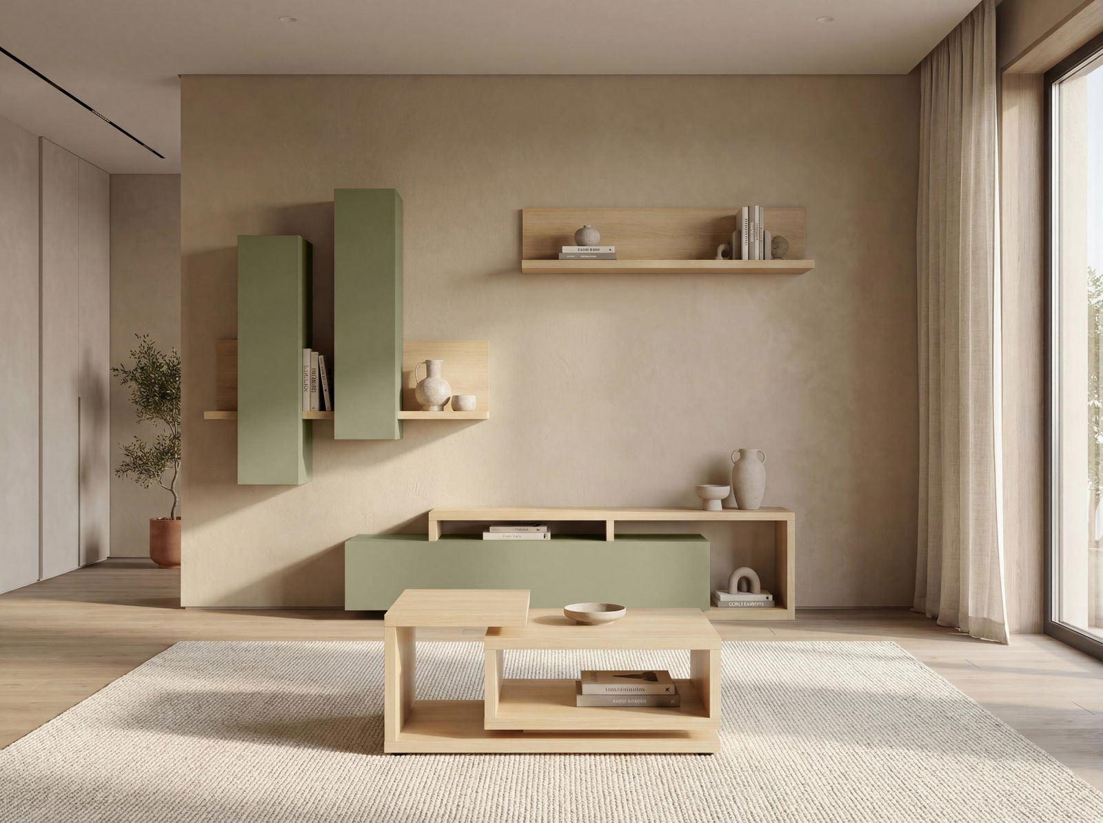 Ράφι Bron σε όμορφους χρωματικούς συνδασμούς, ιδανικό για έναν ζεστό και μοντέρνο χώρο. Η κατασκευή του δίνει την δυνατότητα τοποθέτησης ψηλότερων και μεγαλύτερων αντικειμένων, λόγω των ευρύχωρων επιφανειών του, για μια εντυπωσιακότερη διακόσμηση.