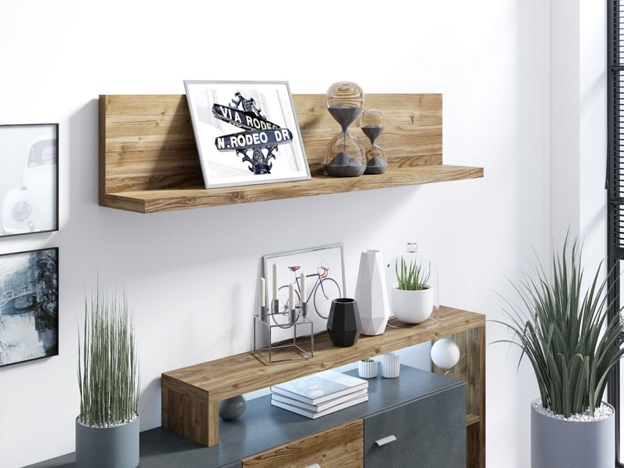 Ράφι Bron σε όμορφους χρωματικούς συνδασμούς, ιδανικό για έναν ζεστό και μοντέρνο χώρο. Η κατασκευή του δίνει την δυνατότητα τοποθέτησης ψηλότερων και μεγαλύτερων αντικειμένων, λόγω των ευρύχωρων επιφανειών του, για μια εντυπωσιακότερη διακόσμηση.
