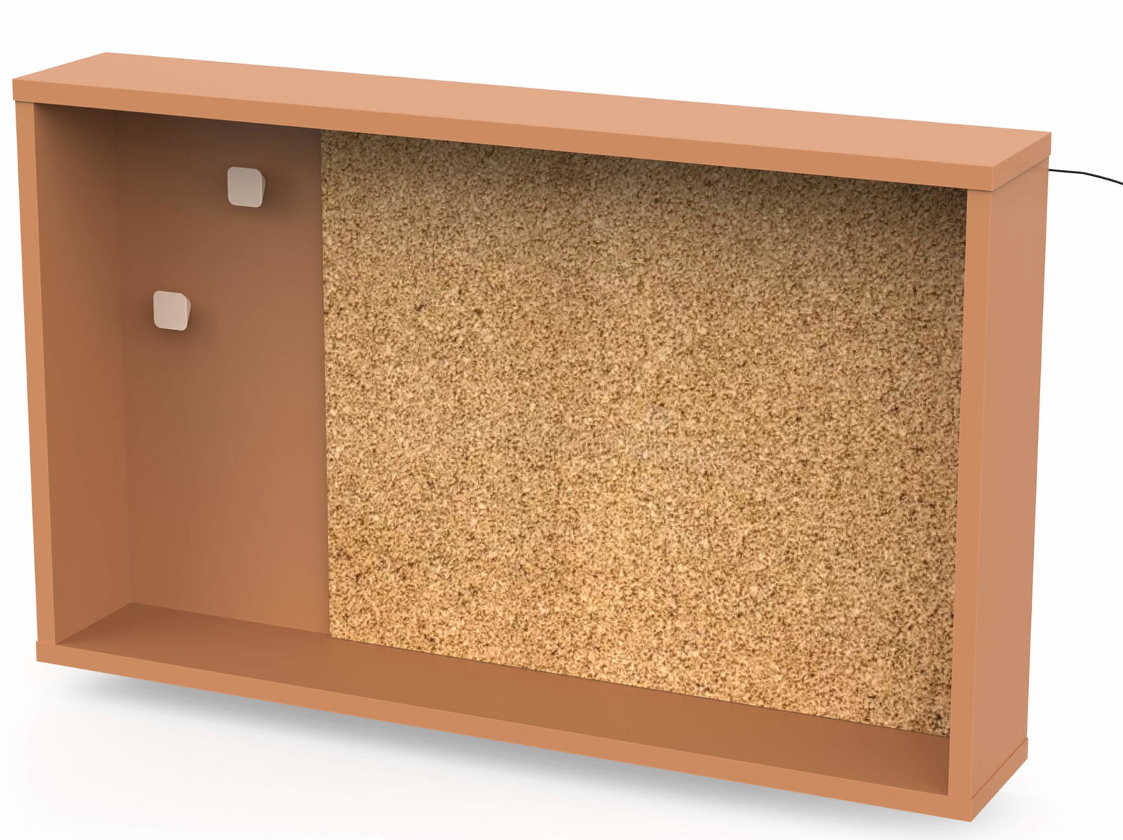 Το παιδικό ράφι τοίχου με φελλό και ενσωματωμένο φωτισμό Led μπορεί να συνδυαστεί με τα υπόλοιπα έπιπλα της ίδιας σειράς, δημιουργώντας ένα ολοκληρωμένο παιδικό δωμάτιο.