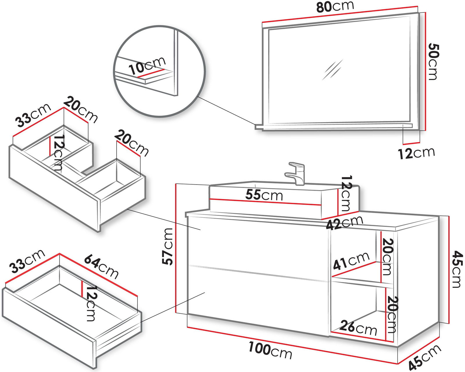 Τα έπιπλα μπάνιου με αυλακώσεις διαθέτουν μελετημένο σχεδιασμό. Το αναρτημένο ντουλάπι προσφέρει δύο συρτάρια και ανοιχτά ράφια. Το εσωτερικό που έχει σχεδιαστεί με αυτόν τον τρόπο παρέχει εύκολη πρόσβαση στα αποθηκευμένα καλλυντικά και αξεσουάρ.