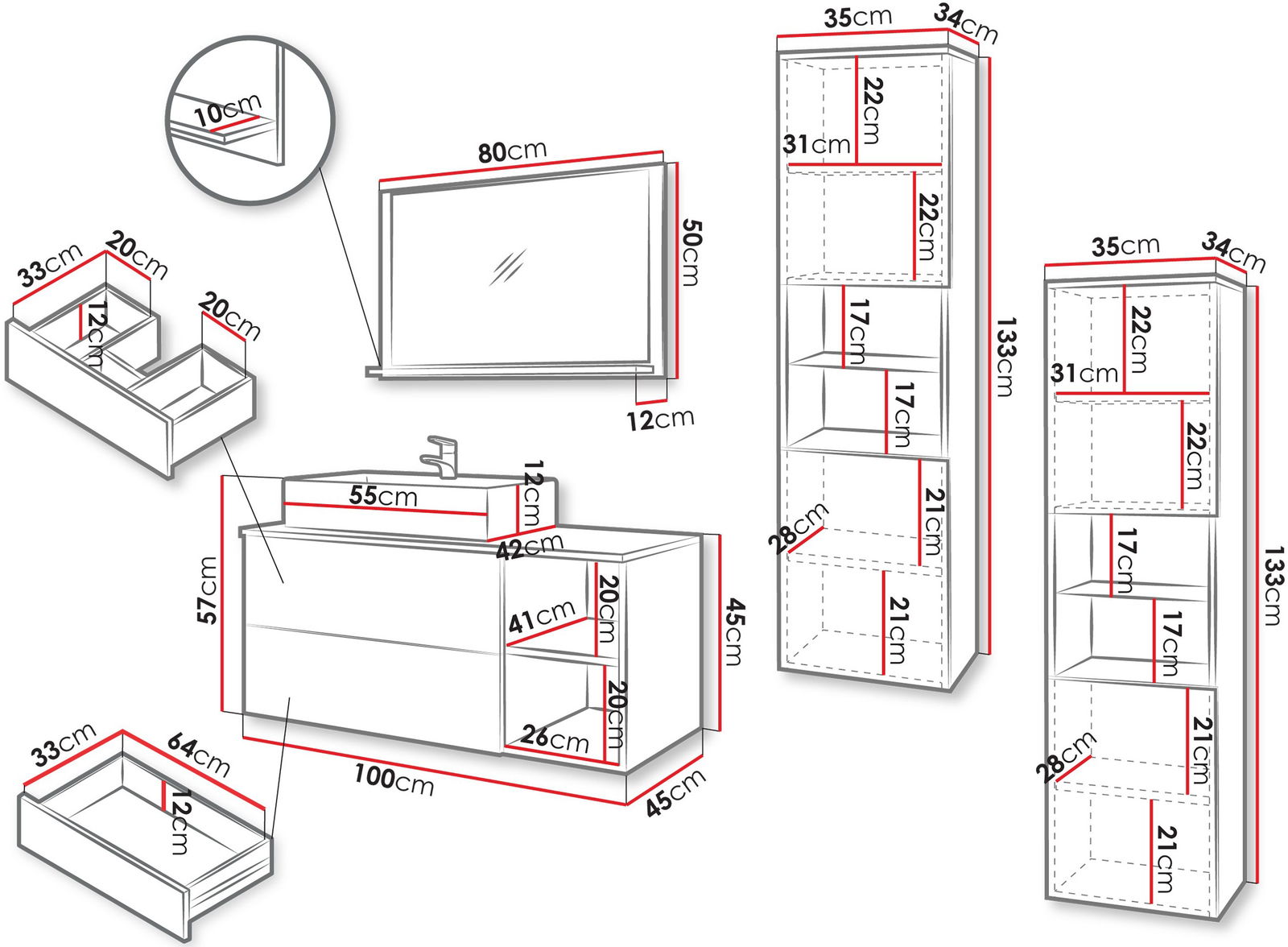 * Οι διαστάσεις του προϊόντος δίνονται σε εκατοστά και ενδέχεται να διαφέρουν από τις πραγματικές κατά ± 3cm.