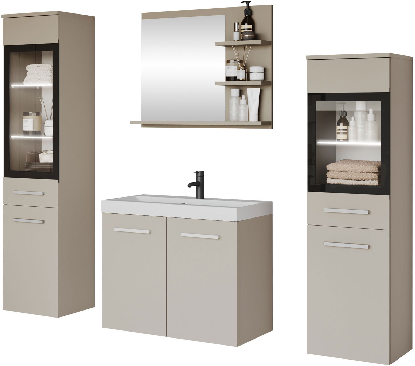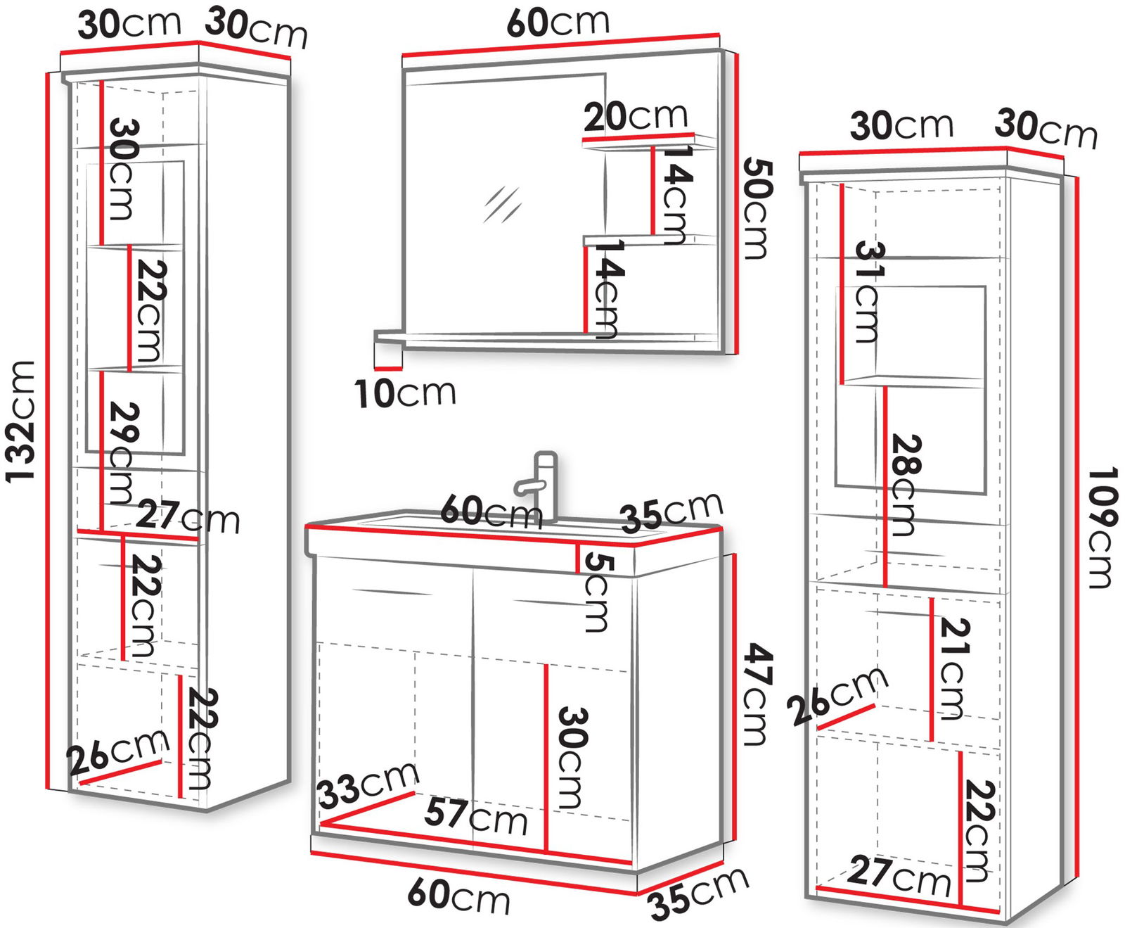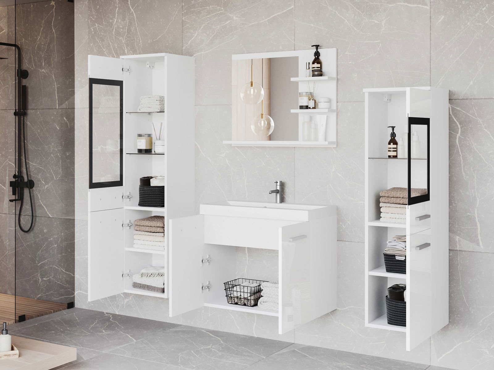 Το σετ μπάνιου Madrit I ξεχωρίζει χάρη στον ιδιαίτερο σχεδιασμό του, με ντουλάπια που περιλαμβάνουν βιτρίνα και ράφια με φωτισμό. Με το συγκεκριμένο σετ, η οργάνωση του μπάνιου σας θα γίνει πιο εύκολη και η αισθητική του θα αναβαθμιστεί. Εξοικονομήστε χώρο με τα επιτοίχια έπιπλά του και διατηρήστε εύκολα όλες τις επιφάνειες καθαρές, χωρίς υγρασία
