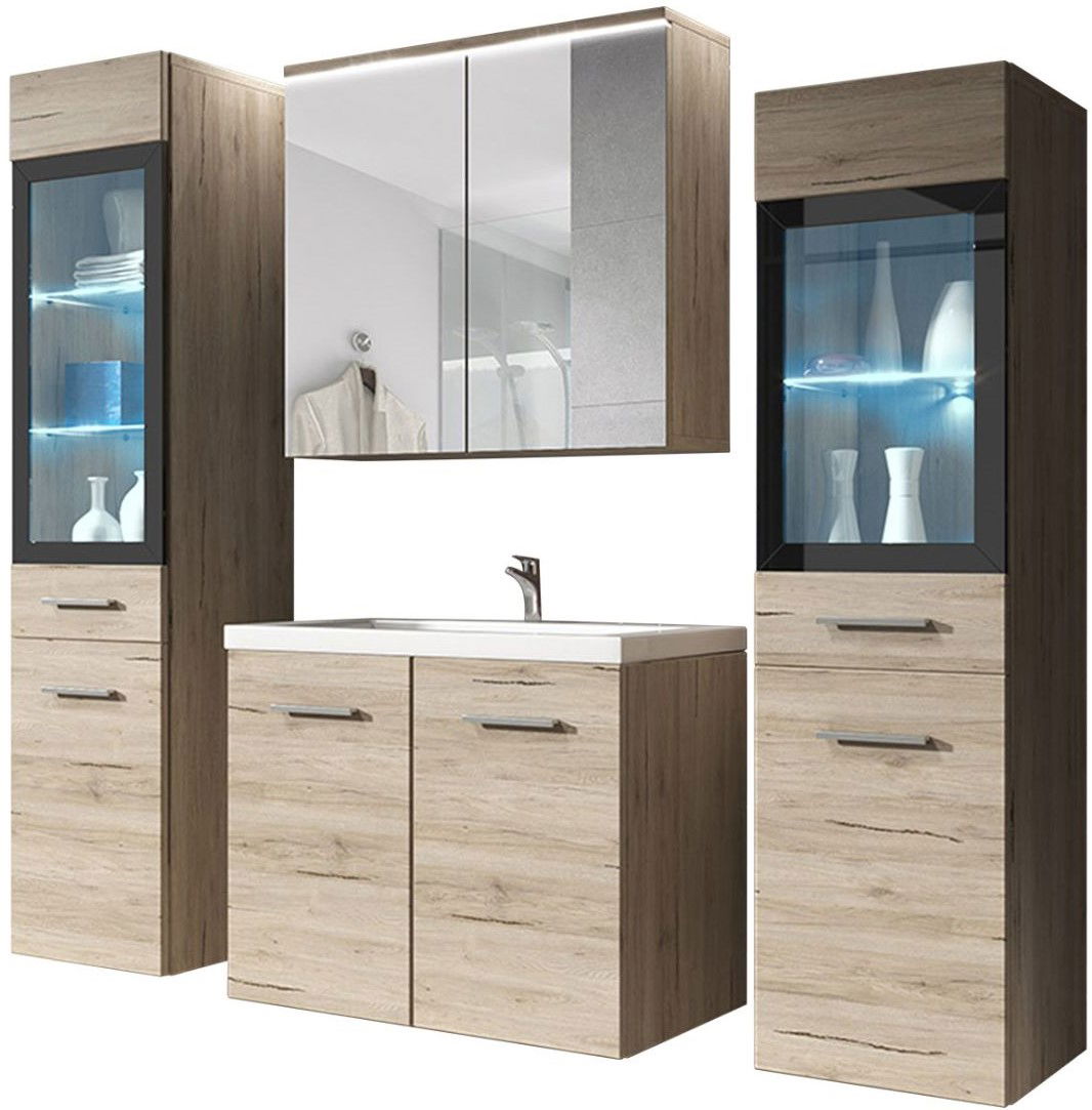 Το σετ μπάνιου Madrit II ξεχωρίζει χάρη στον ιδιαίτερο σχεδιασμό του, με ντουλάπια που περιλαμβάνουν βιτρίνα και ράφια με φωτισμό. Με το συγκεκριμένο σετ, η οργάνωση του μπάνιου σας θα γίνει πιο εύκολη και η αισθητική του θα αναβαθμιστεί. Εξοικονομήστε χώρο με τα επιτοίχια έπιπλά του και τον καθρέπτη με αποθηκευτικό χώρο και, διατηρήστε εύκολα όλες τις επιφάνειες καθαρές, χωρίς υγρασία