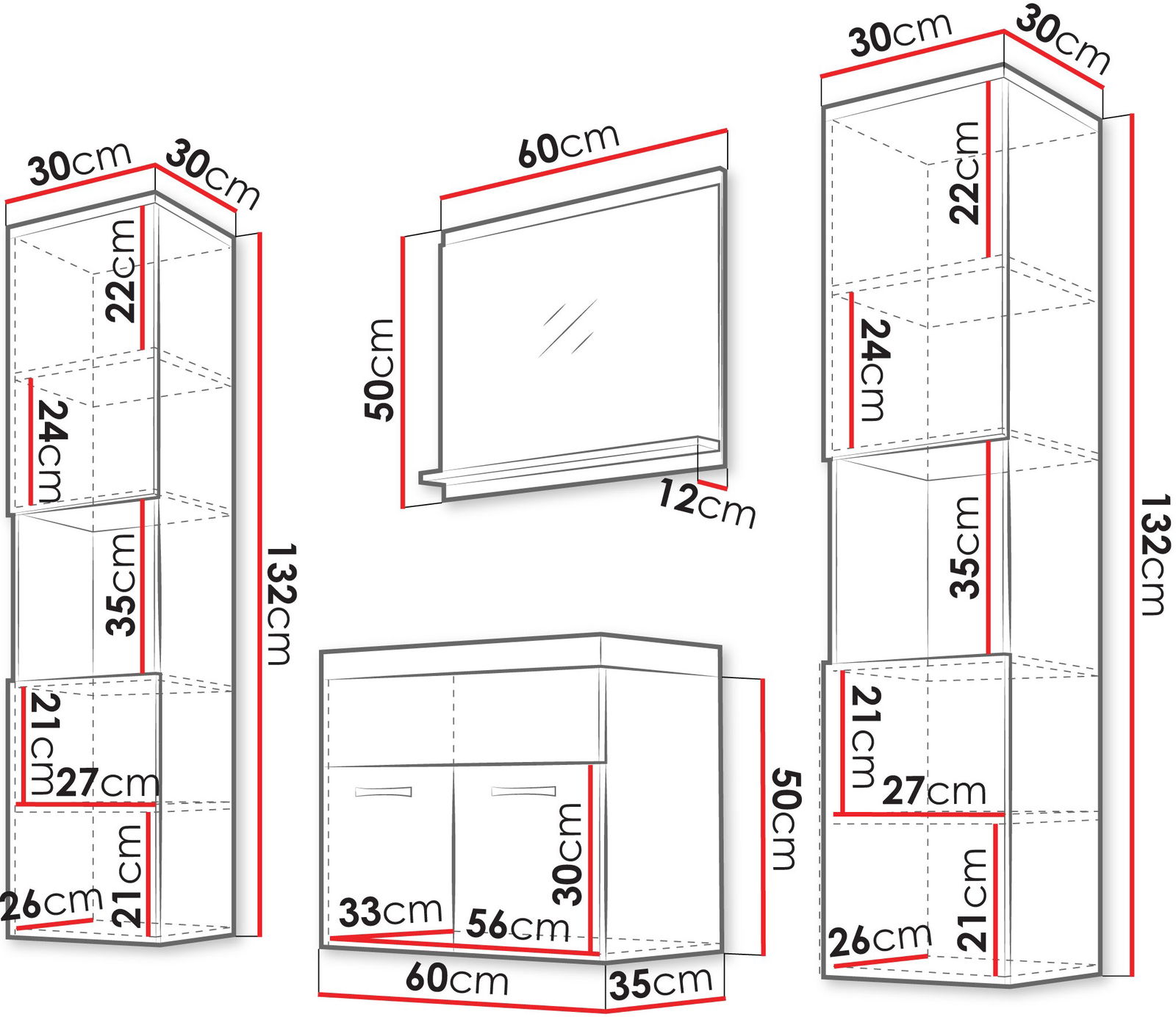 – Κάθετο κρεμαστό ντουλάπι επιτοίχιας τοποθέτησης x2