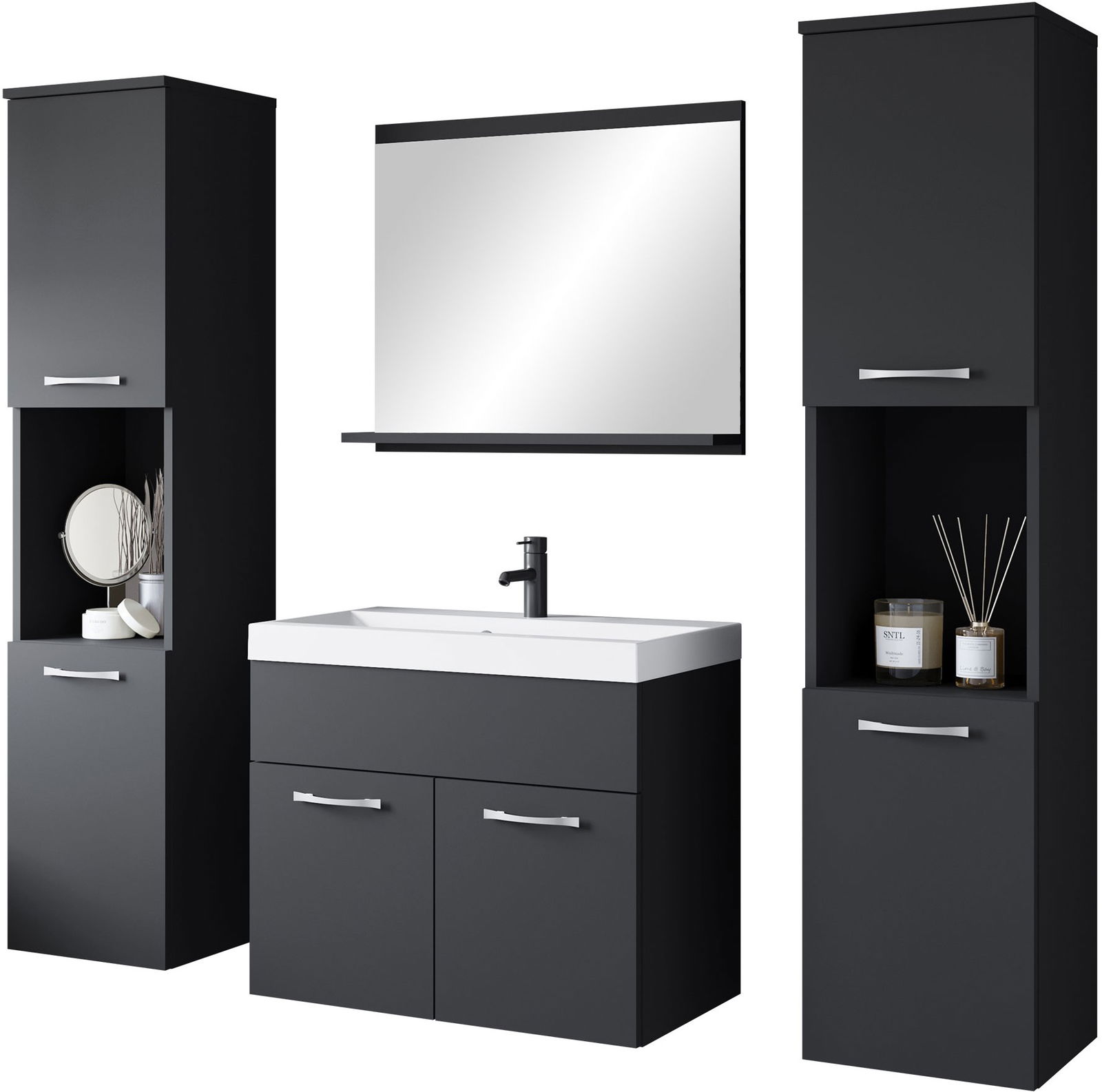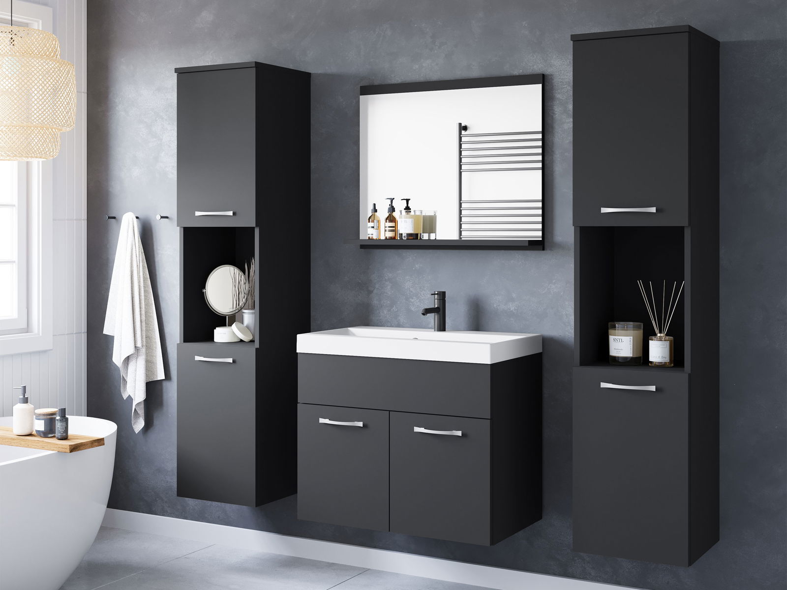 Πλήρες Σετ Μπάνιου Montreal μοντέρνου σχεδιασμού με πρακτικούς αποθηκευτικούς χώρους που περιλαμβάνει: