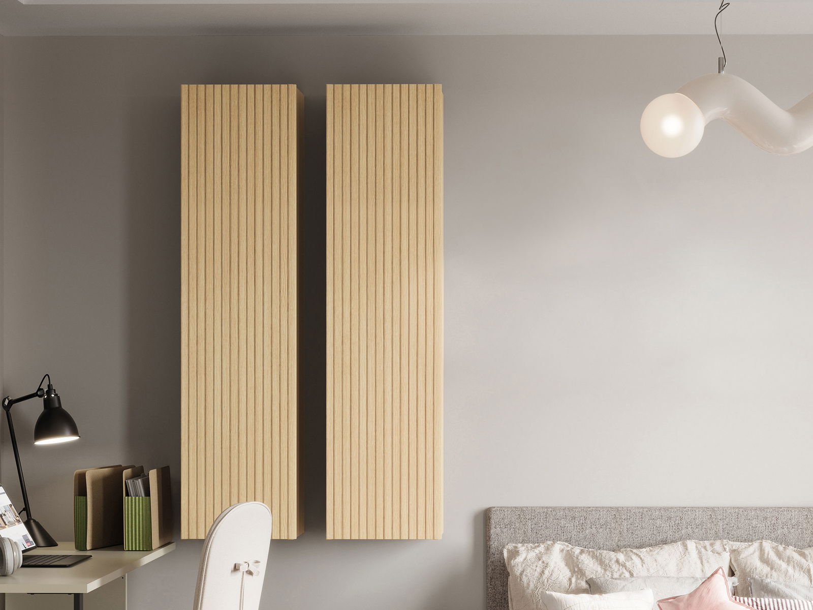 Το σετ δύο κρεμαστών στηλών Sigma προσθέτει μια πινελιά υφής και οπτικού ενδιαφέροντος στους τοίχους σας. Το φυσικό ξύλινο φινίρισμα και οι κάθετες αυλακώσεις δημιουργούν μια ζεστή και φιλόξενη εμφάνιση.