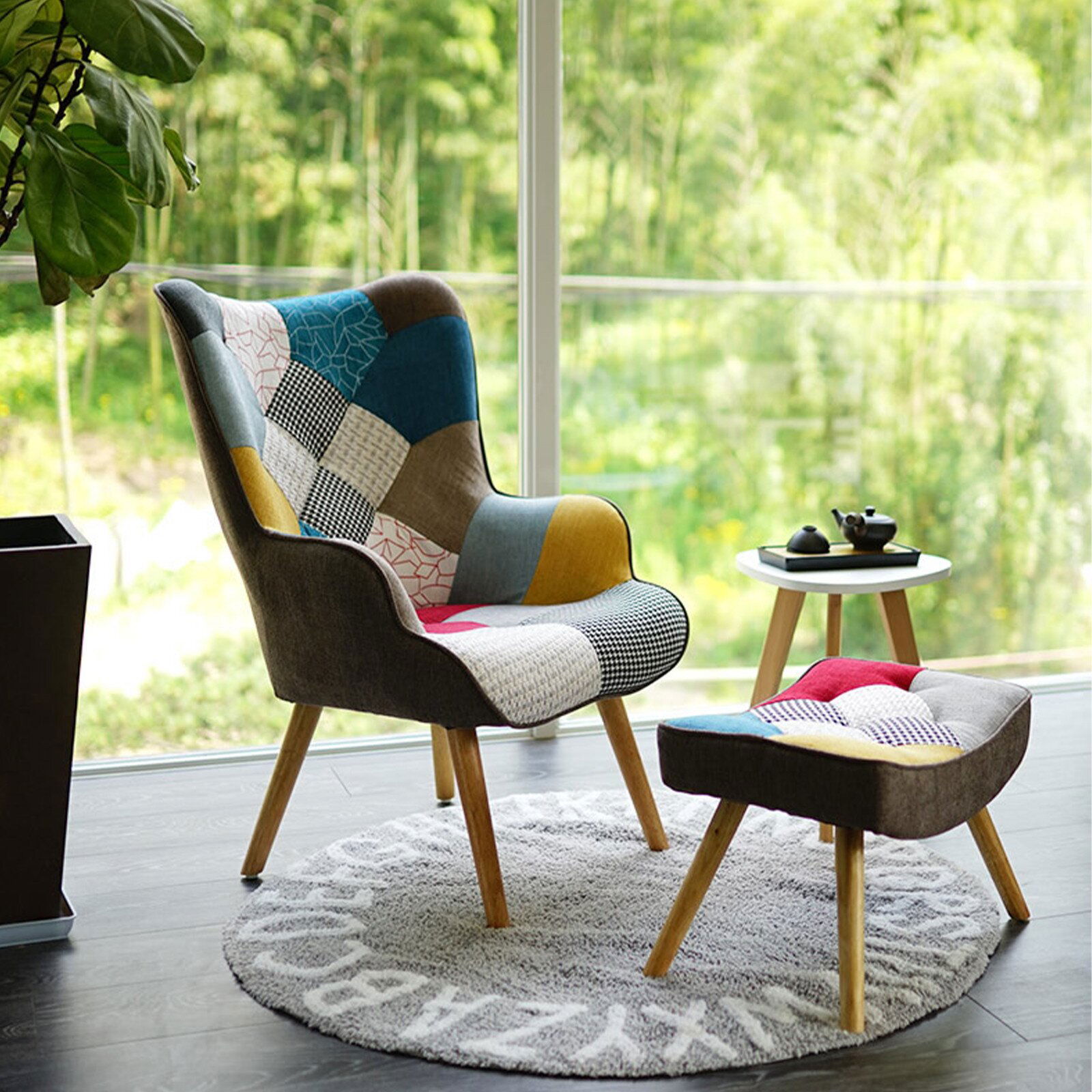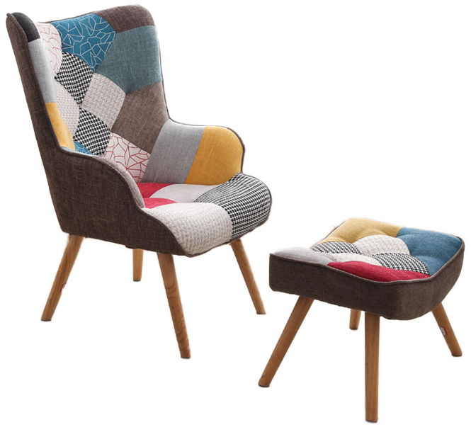 Σετ πολυθρόνας Farel, μοντέρνου σχεδιασμού με patchwork επένδυση υφάσματος, αναπαυτικό κάθισμα και υποπόδιο που το καθιστούν ιδανική επιλογή για κάθε χώρο.
