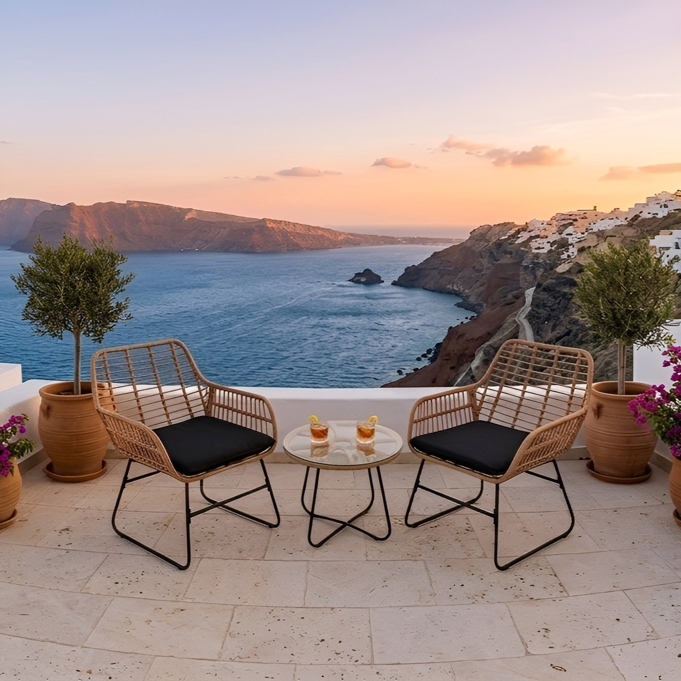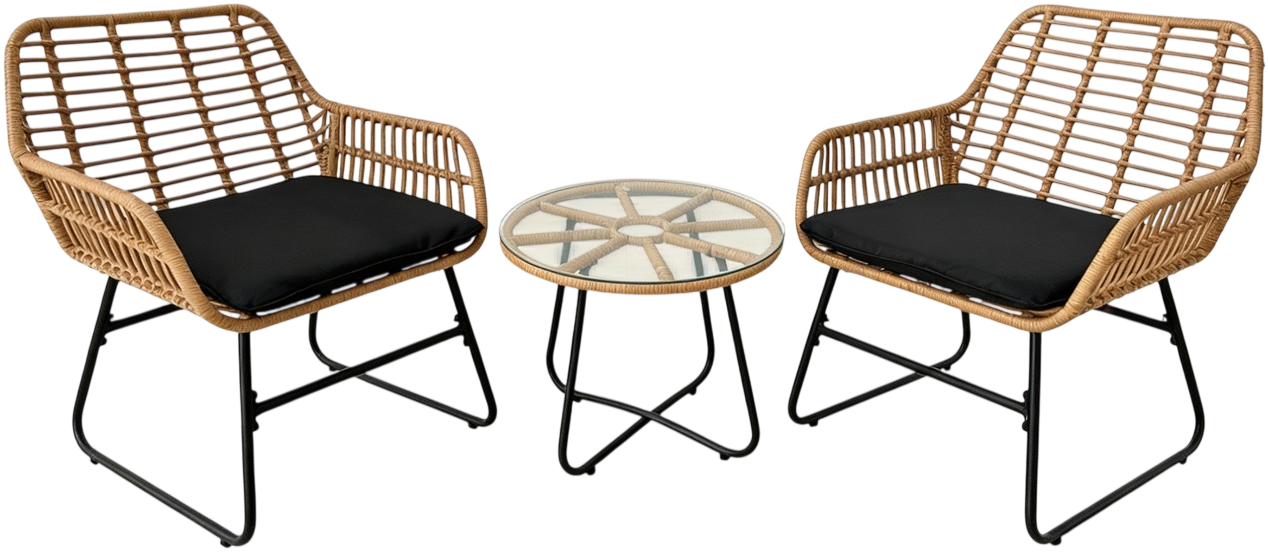 Σετ σαλονιού Comodor, μοντέρνου σχεδιασμού, με αναπαυτικό κάθισμα και πλέξη τεχνιτού ρατάν γύρω από τον μεταλλικό σκελετό, ιδανική επιλογή για τον κήπο ή το μπαλκόνι.
