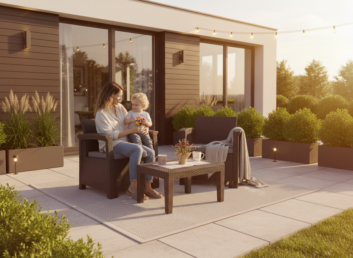 Σετ σαλονιού Memento, μοντέρνου σχεδιασμού, με πρακτικές διαστάσεις, ιδανική επιλογή για τον κήπο ή το μπαλκόνι.