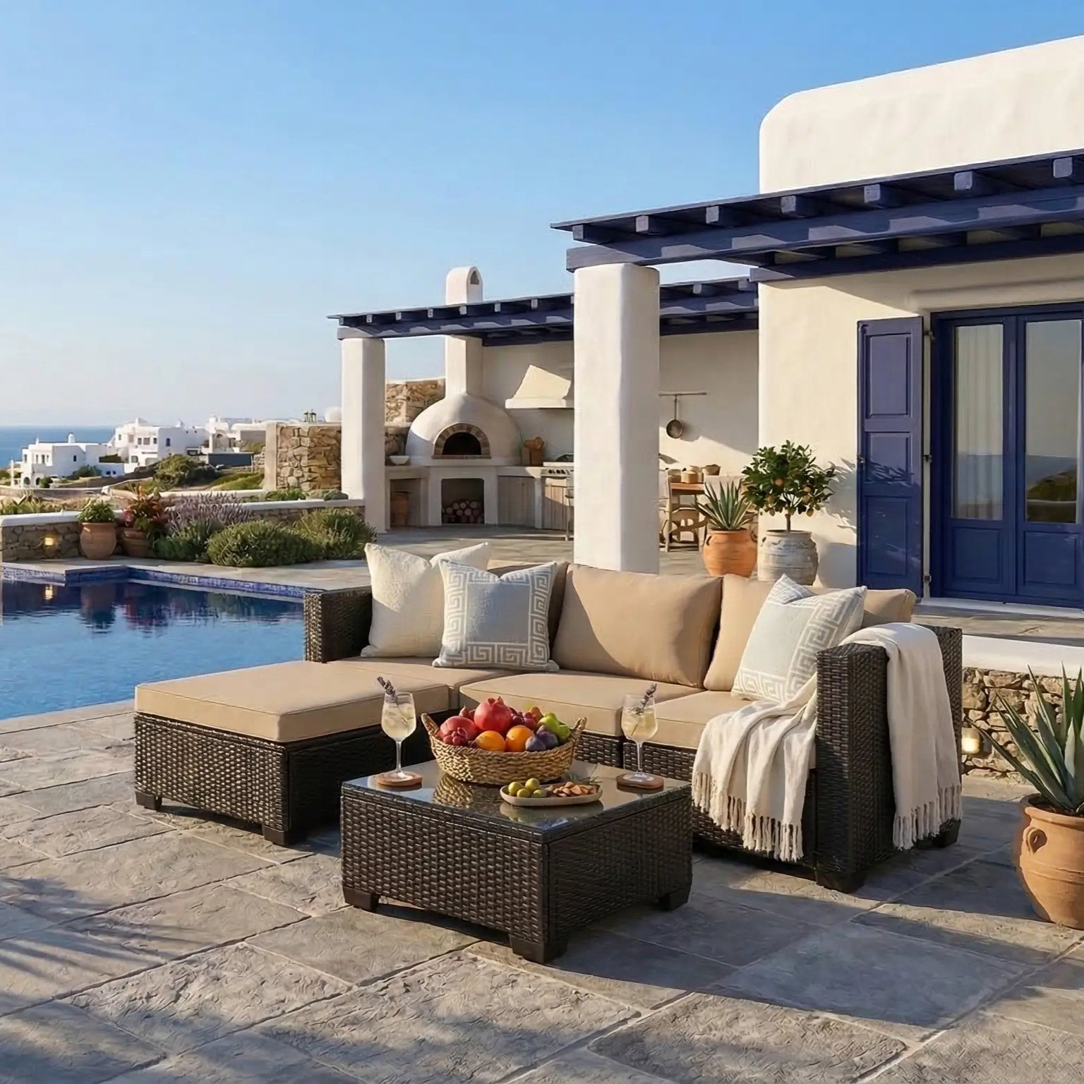 Το Σετ σαλονιού Nerion είναι ένα έπιπλο πολυμορφικού σχεδιασμού αποτελούμενο από πολυθρονάκια που ενώνονται και δημιουργούν έναν γωνιακό καναπέ. Το σετ έρχεται να συμπληρώσει το τραπεζάκι. Τα μαξιλάρια που διαθέτει χαρίζουν ένα αναπαυτικό κάθισμα που θα σας προσφέρει στιγμές χαλάρωσης και ξεκούρασης. Το Σετ σαλονιού Nerion μπορεί να ταιριάξει εύκολα στον κήπο ή το μπαλκόνι του σπιτιού σας χάρη στις βολικές του διαστάσεις.