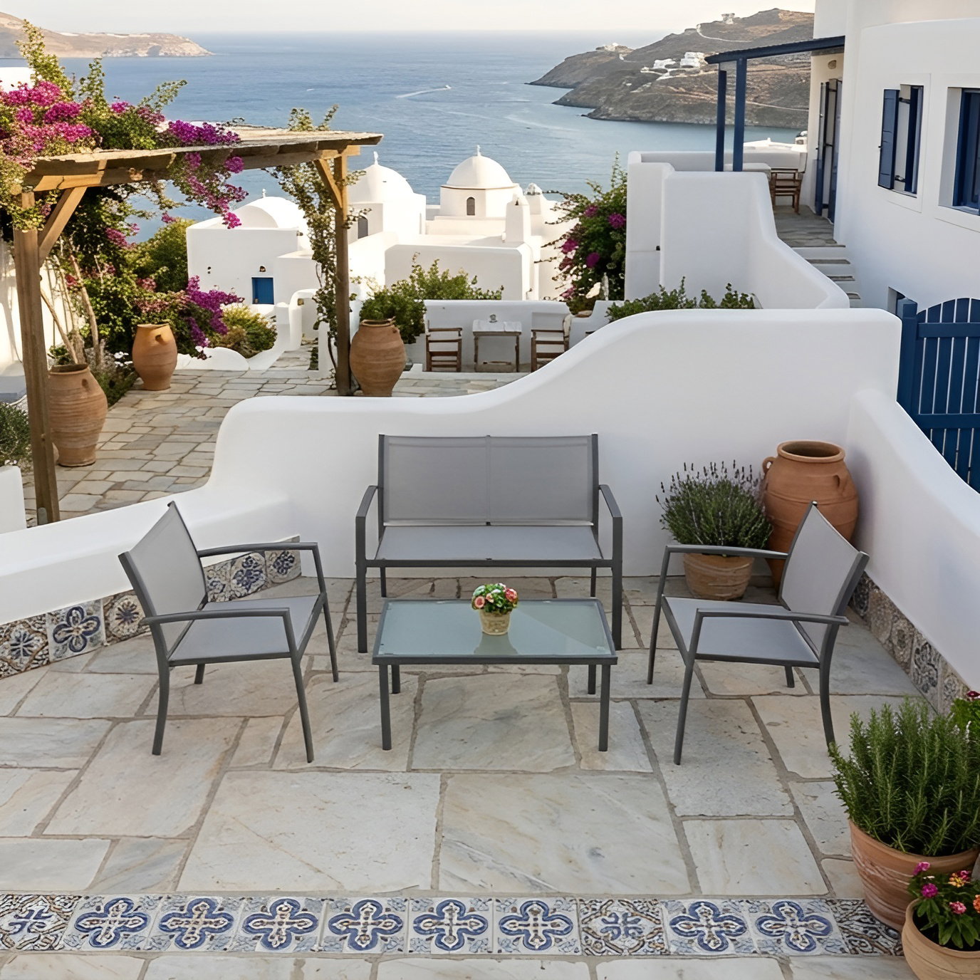 Σετ σαλονιού Patio, μοντέρνου σχεδιασμού με πρακτικές διαστάσεις, ιδανικό για τον κήπο ή το μπαλκόνι σας.