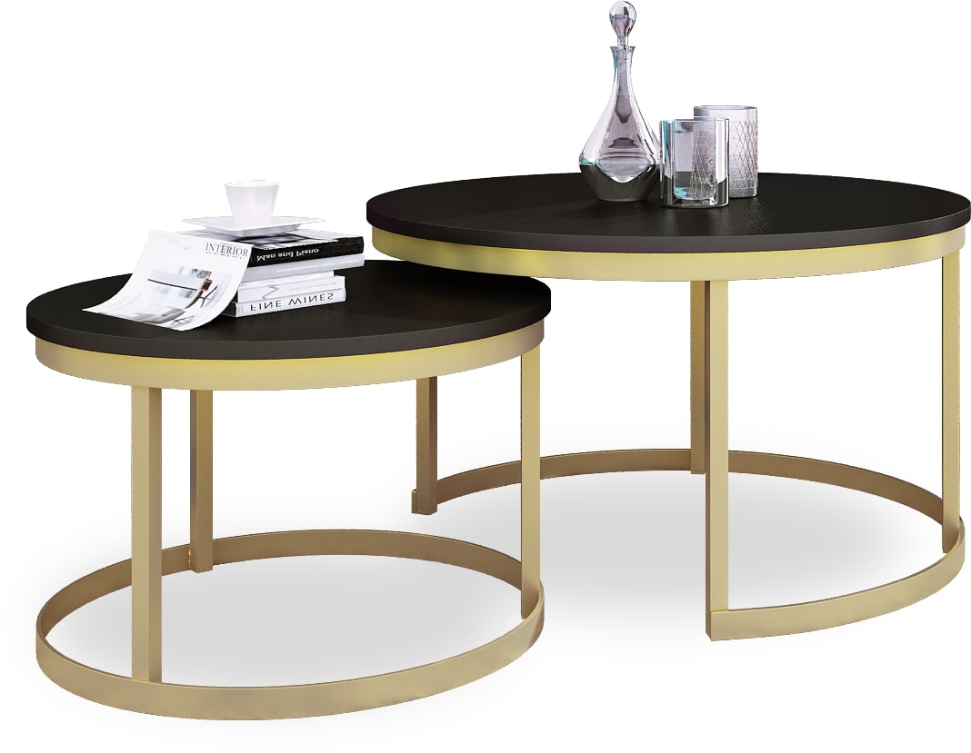 Τα τραπεζάκια σαλονιού Calling είναι ένα κομψό και μοντέρνο σετ που θα προσθέσει μια πινελιά στυλ στον χώρο σας, καθώς δημιουργεί ένα αρμονικό και πρακτικό αποτέλεσμα. Οι στρογγυλές επιφάνειες των τραπεζιών είναι ιδανικές για να τοποθετήσετε τα αγαπημένα σας αντικείμενα, όπως βιβλία, περιοδικά, ποτά ή φαγητό.
