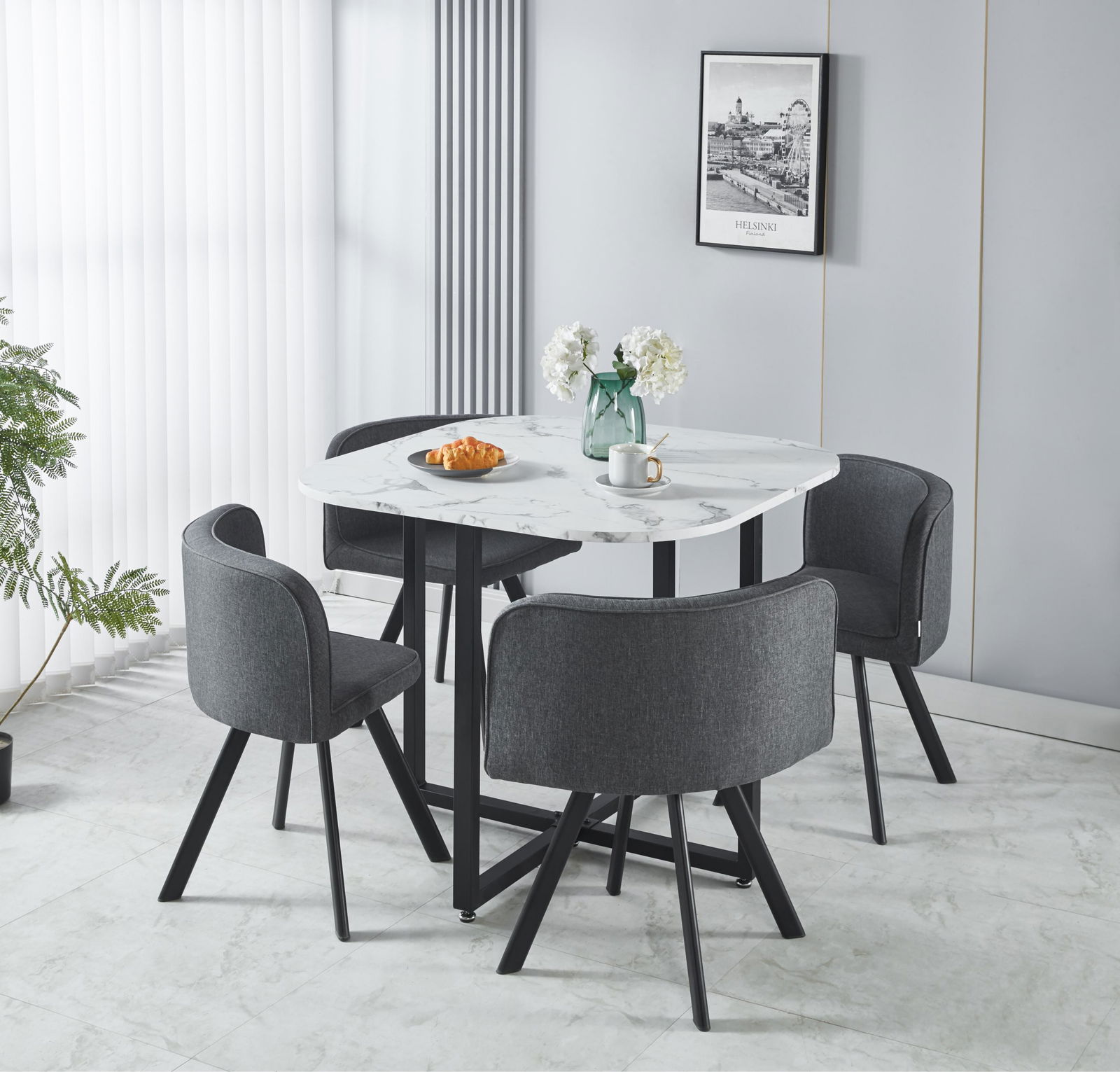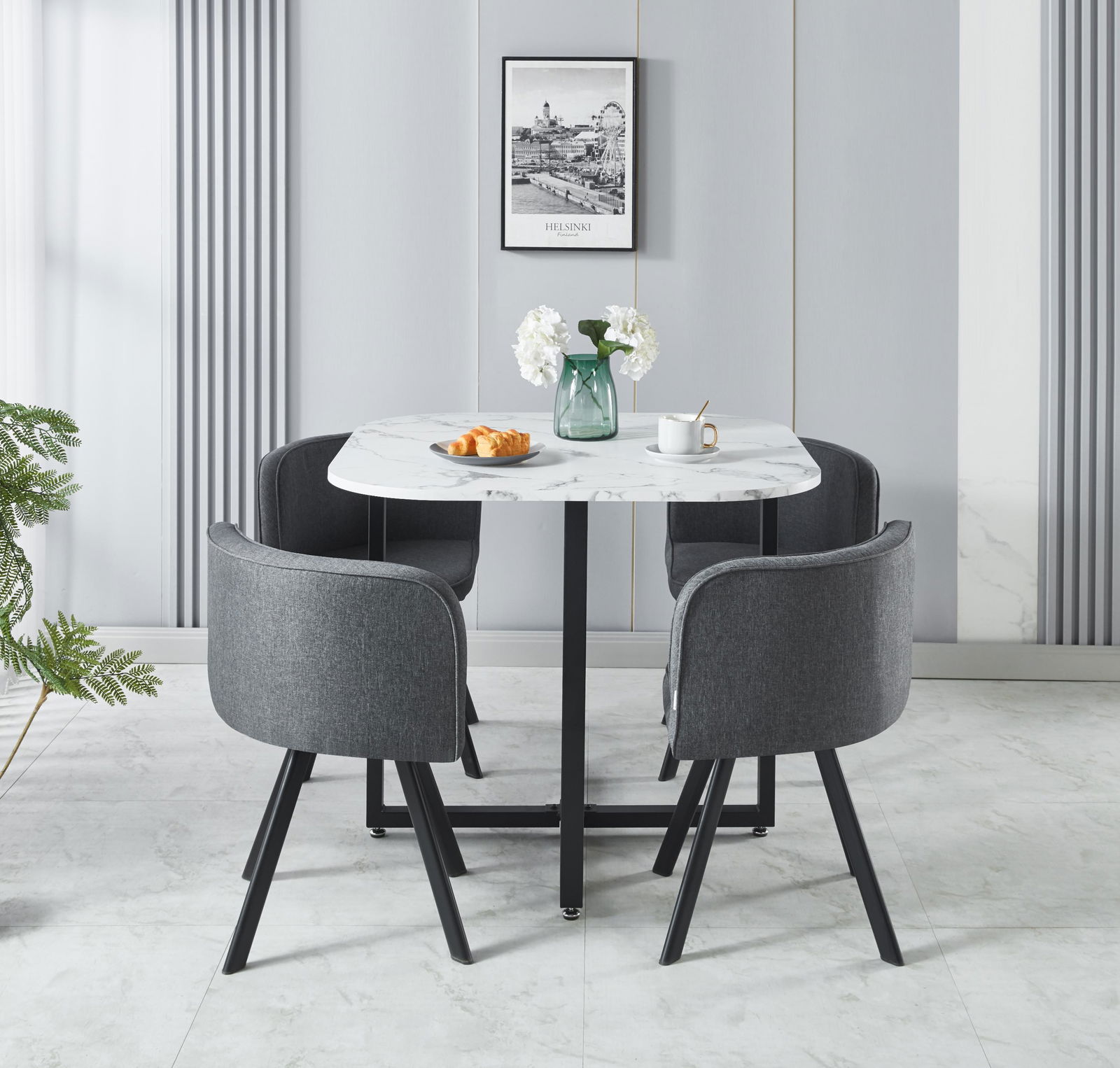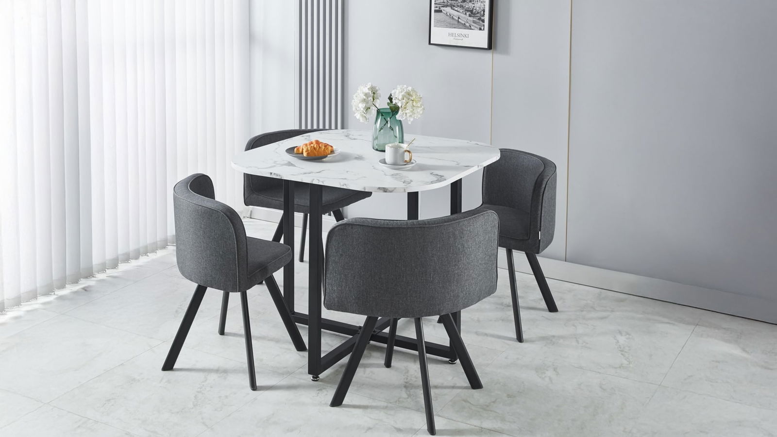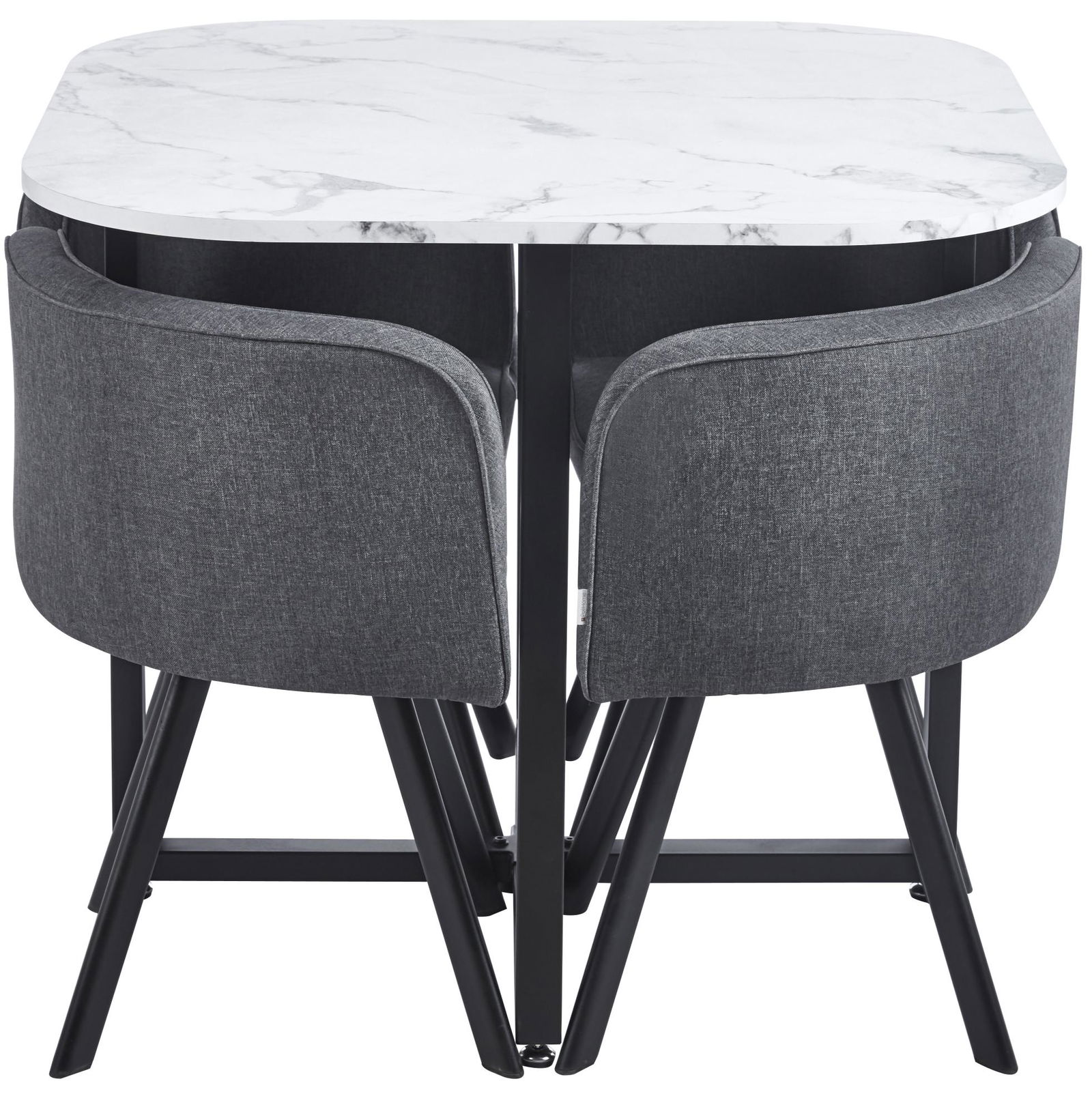 Σετ τραπεζαρίας Adeline μίνιμαλ αισθητικής με βολικές διαστάσεις που το καθιστούν ιδανική επιλογή ακόμη και για μικρότερους χώρους. Ο ιδιαίτερος σχεδιασμός του σετ επιτρέπει στις καρέκλες να αποθηκεύονται με τέτοιο τρόπο κάτω απο το τραπέζι ώστε να δεσμεύουν όσο το δυνατόν λιγότερο χώρο.