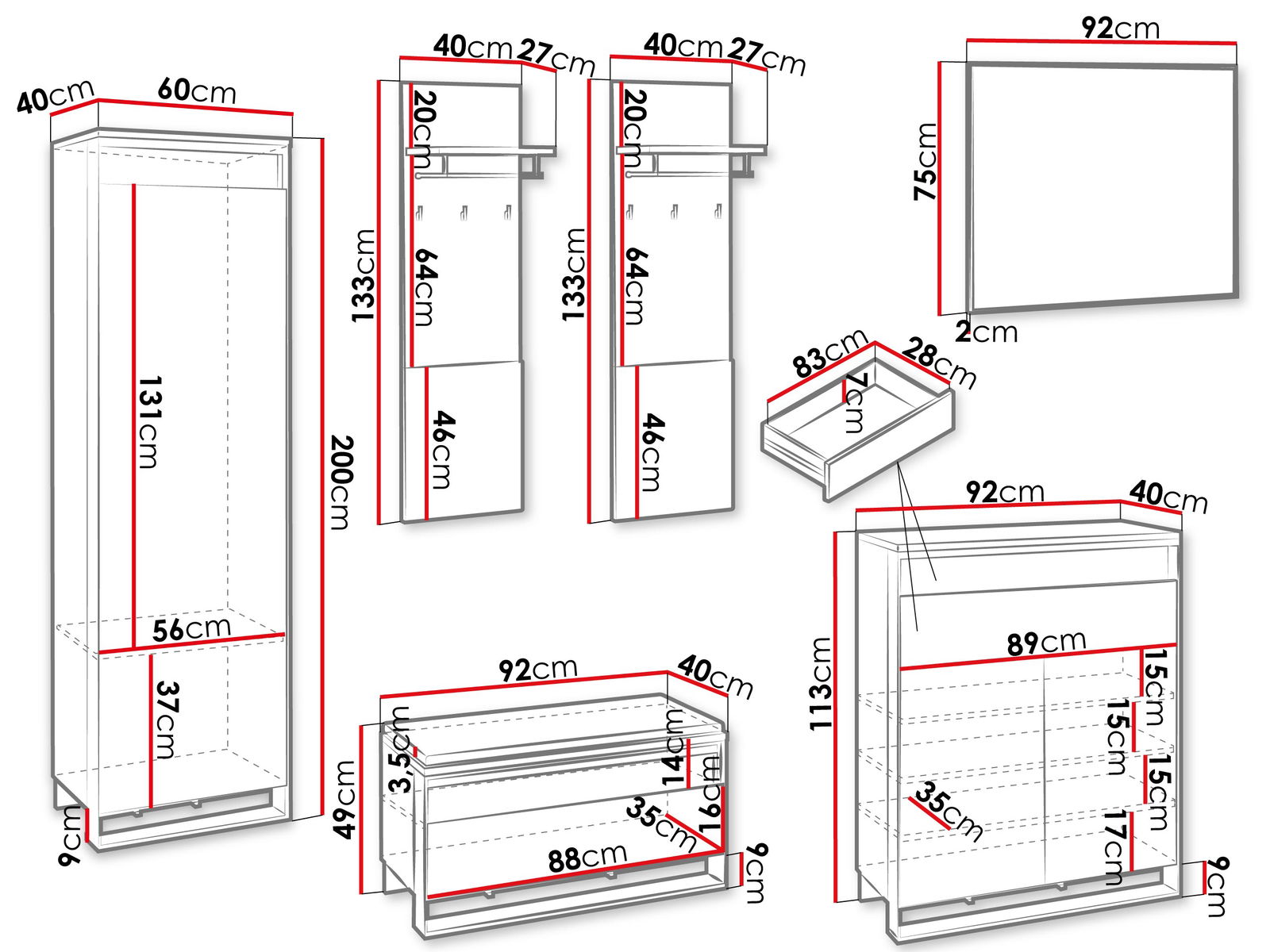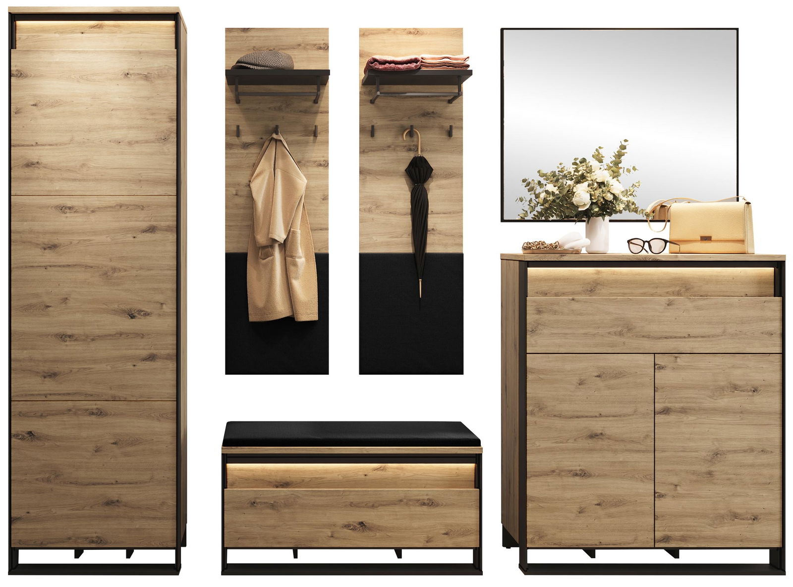 Το σετ υποδοχής Quant VII είναι η τέλεια επιλογή για να οργανώσετε και να διακοσμήσετε την είσοδο του σπιτιού σας. Με τα πολλαπλά ράφια και τις συρταριέρες, προσφέρει άπλετο χώρο αποθήκευσης, ενώ ο μοντέρνος σχεδιασμός θα αναβαθμίσει την αισθητική του χώρου.
