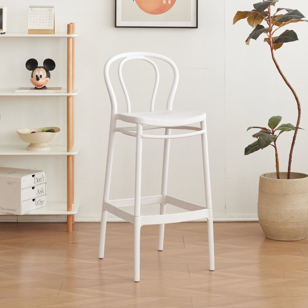 Σκαμπό μπαρ Charlotte, με καμπυλόγραμμο σχεδιασμό στην πλάτη και γραμμικές λεπτομέρειες στα πόδια, θα αναβαθμίσει την αισθητική του χώρου σας. Είναι εύκολο ως προς την μεταφορά του, λόγω του ελαφρύ υλικού από το οποίο είναι φτιαγμένο. Με φίλτρο προστασίας από την υπεριώδη ακτινοβολία του ηλίου (UV), συμβάλλοντας στην αποφυγή της φθοράς και του αποχρωματισμού του σκαμπό που προκαλείται με την πάροδο του χρόνου, ειδικά όταν αυτό εκτίθεται σε έντονο ηλιακό φως.
