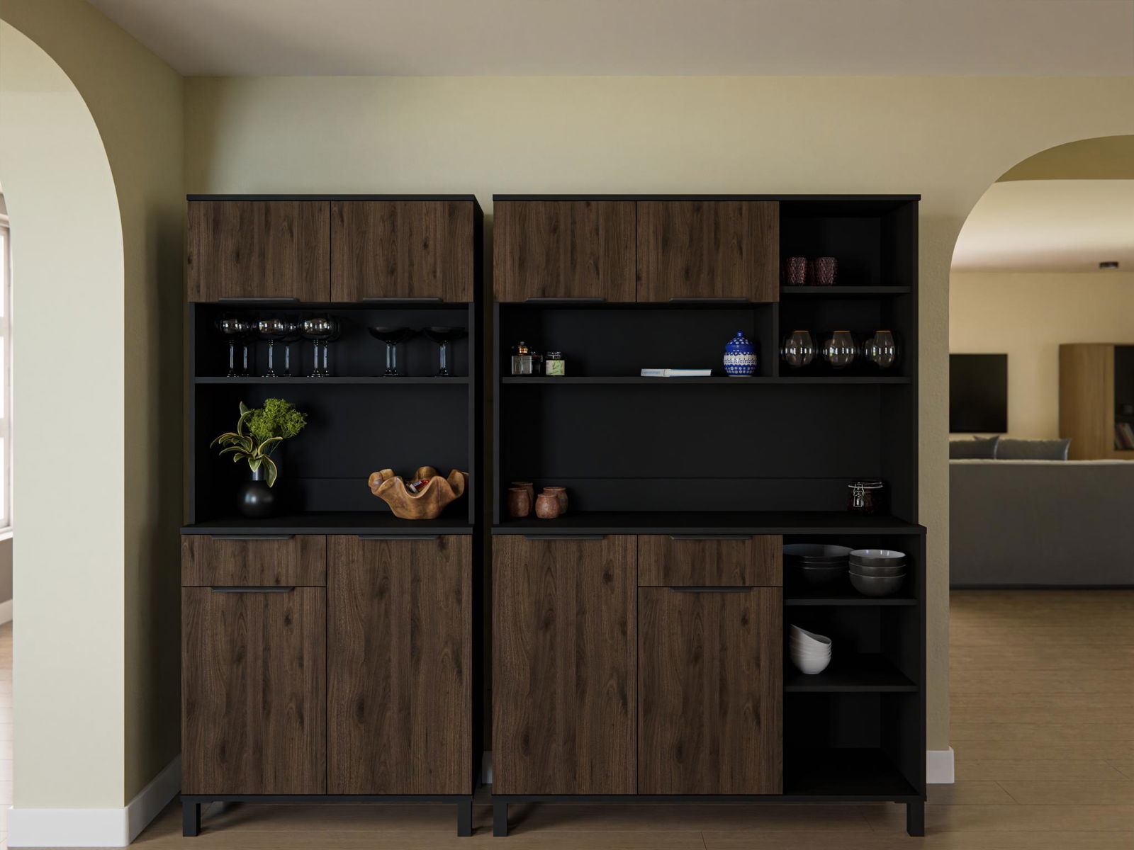 Η σκευοθήκη Monaco Plus προσφέρει κομψή οργάνωση, με ανοιχτές και κλειστές επιφάνειες που αναδεικνύουν τη λεπτότητα του σχεδιασμού της. Ειναι ενα επιπλο που φέρνει διακριτική πολυτέλεια και σύγχρονη ηρεμία σε κάθε κουζίνα ή τραπεζαρία.