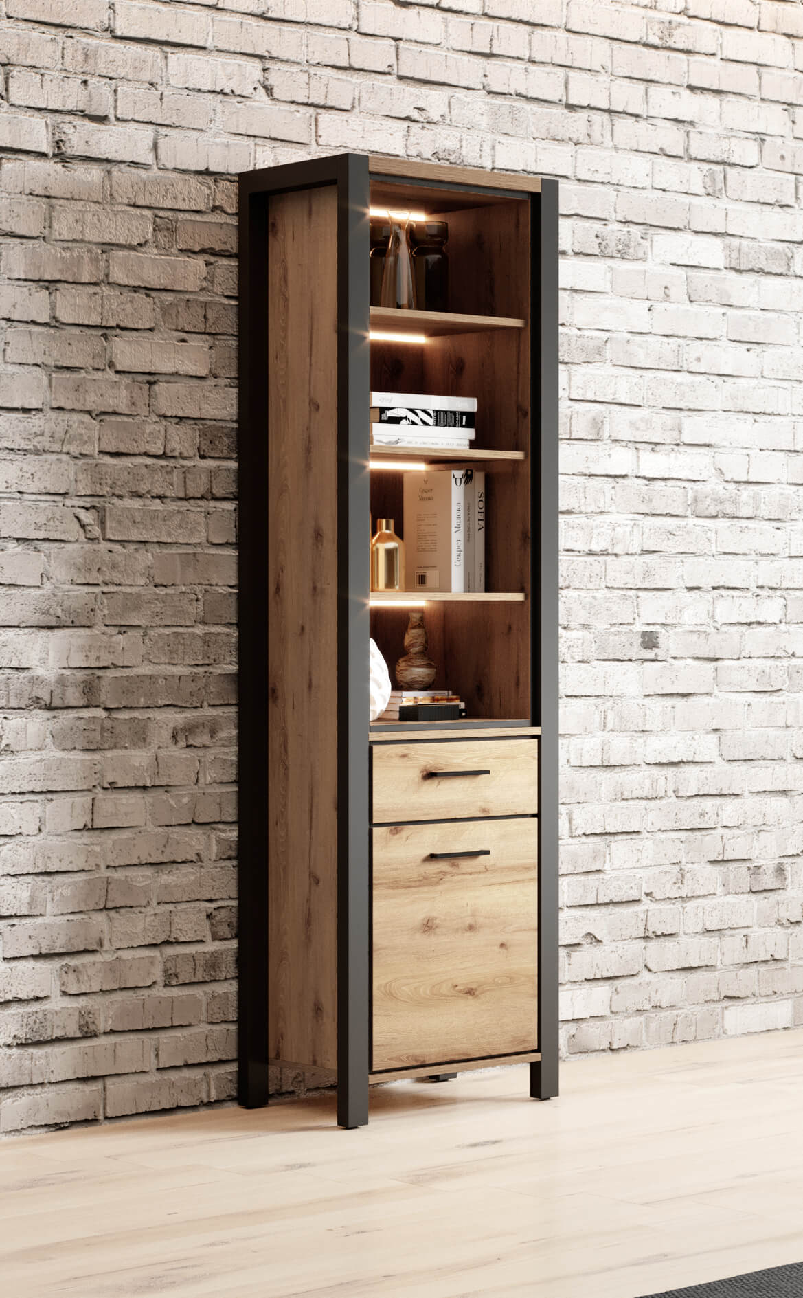 Στήλη Amelie σε μοντέρνο, industrial σχεδιασμό. Είναι σίγουρο πως θα ανανεώσετε τον χώρο σας, προσδίδοντας του μια κομψή νότα, χάρις τις μαύρες λεπτομέρειες που διαθέτει.